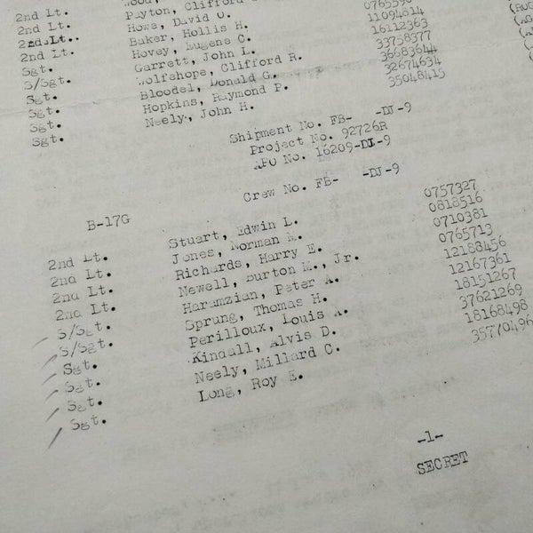 WWII USAAF Personnel File B-17 Bomber Pilot