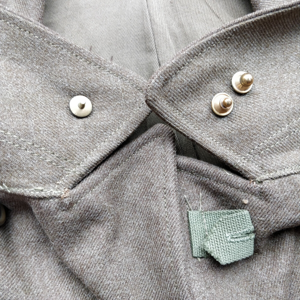 The wool shirt also has a 2nd Armored Division patch with Hell on Wheels tab, as well as the corporal rank stripes. The Garrison cap has Medic piping and like the Ike jacket a DUI pin from the 17th Armored Engineers Battalion.
