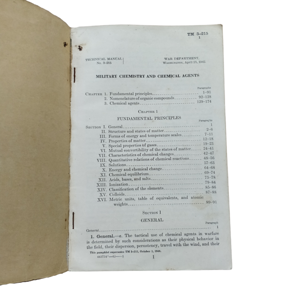 WWII US Field Manual Military Chemistry And Chemical Agents