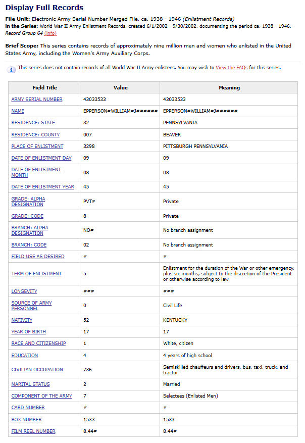 The dog tag set is in neat condition and consists of 2 plates with chain. These identification tags were worn by American soldiers during World War II. These dog tags are in the name of Epperson. An interesting piece for the US collector!