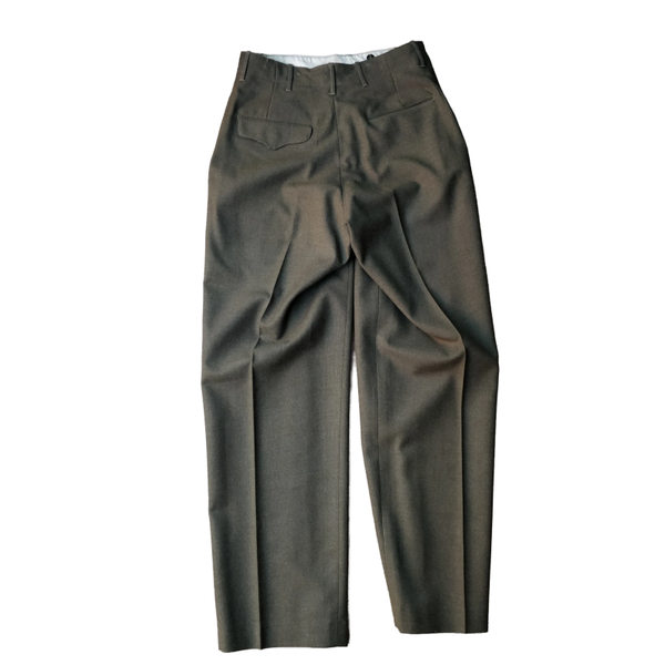 De wool trousers zijn nog in zeer nette staat en hebben nog een net leesbaar label. Het betreft een ruime maat 32 x 33. De Garrison cap is in nette staat en heeft infantry piping en een combined Airborne/Glider cap patch. In de cap zit geen (maat) label meer maar vermoedelijk is het een maat 6 7/8 - 7. De set is zeer compleet en een absolute aanwinst voor de Airborne verzamelaar!