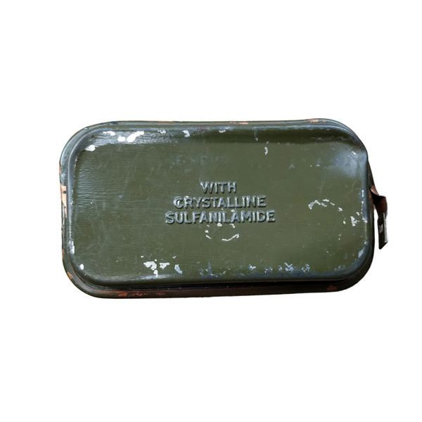 De first aid pouch is een net exemplaar, er zit ook nog een first aid tin bij! Het blikje is nog gesloten en de hoes is vaag gedateerd. Een mooi stuk voor je Amerikaanse collectie!