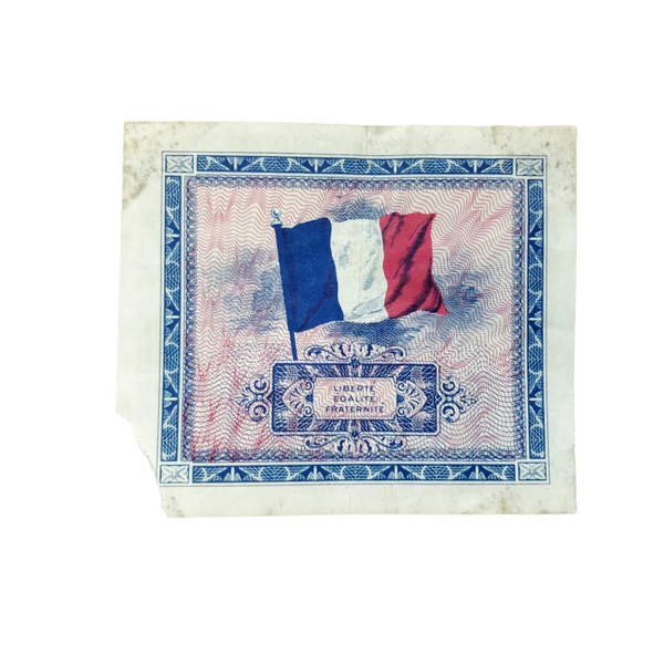 The invasion money is in used condition and was taken to Europe by the Americans, a nice item for the collection!