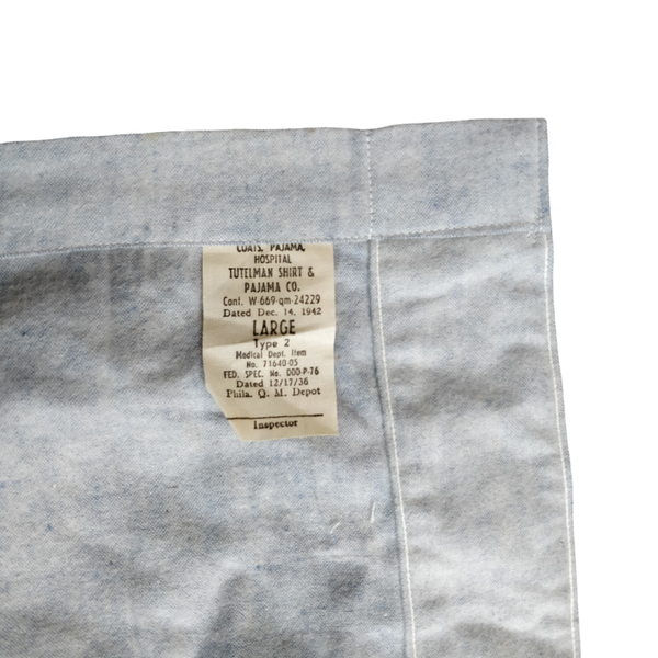 The Pajamas set is in neat condition and unused! The set consists of a jacket and pants. Both still have the label and these are easy to read. The pieces come from 1942! A nice set for the Medical Department collector!