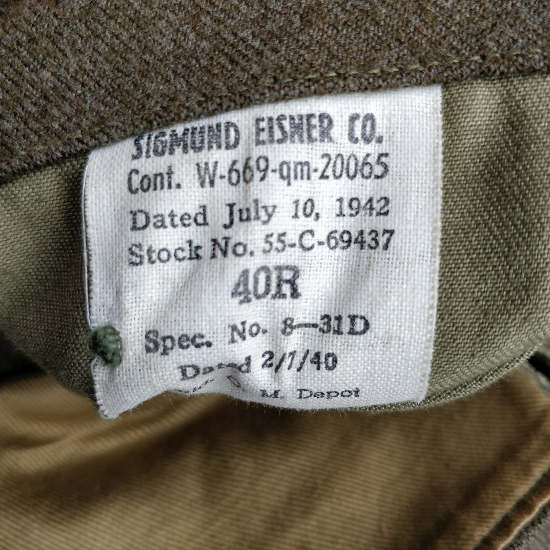 The Class A is still in very good condition, except for a few minor blemishes. The jacket belonged to a soldier in the US Air Force. It is a large size 40R. The jacket is neatly dated and has a name and laundry code in the collar. A beautiful piece for the American collector!