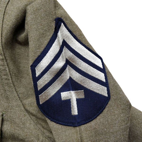 The blouse has slight traces of use but is otherwise still in neat condition. The label with date 1941 is still present. The blouse has rank stripes for a technician 4th grade. A nice addition to your US collection!