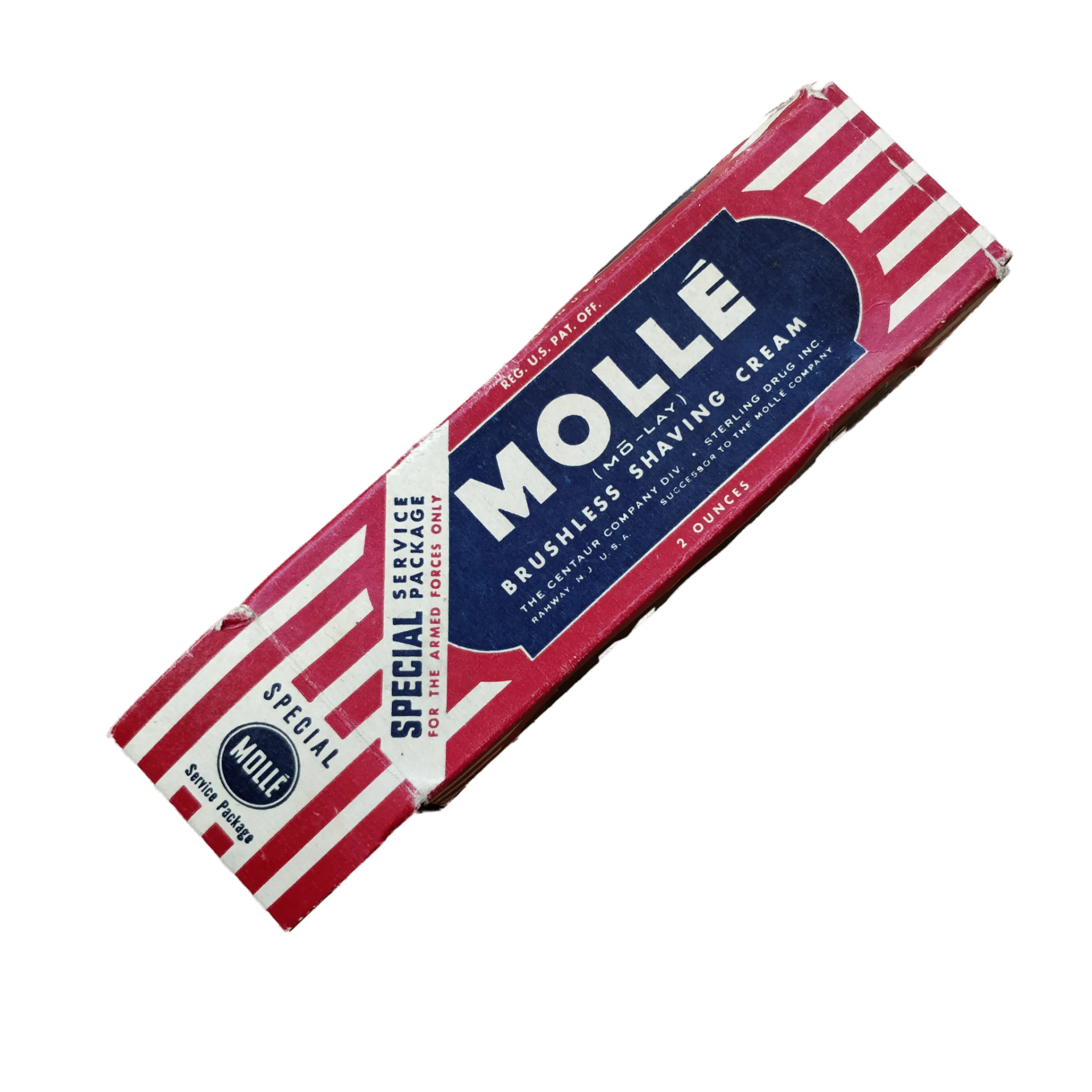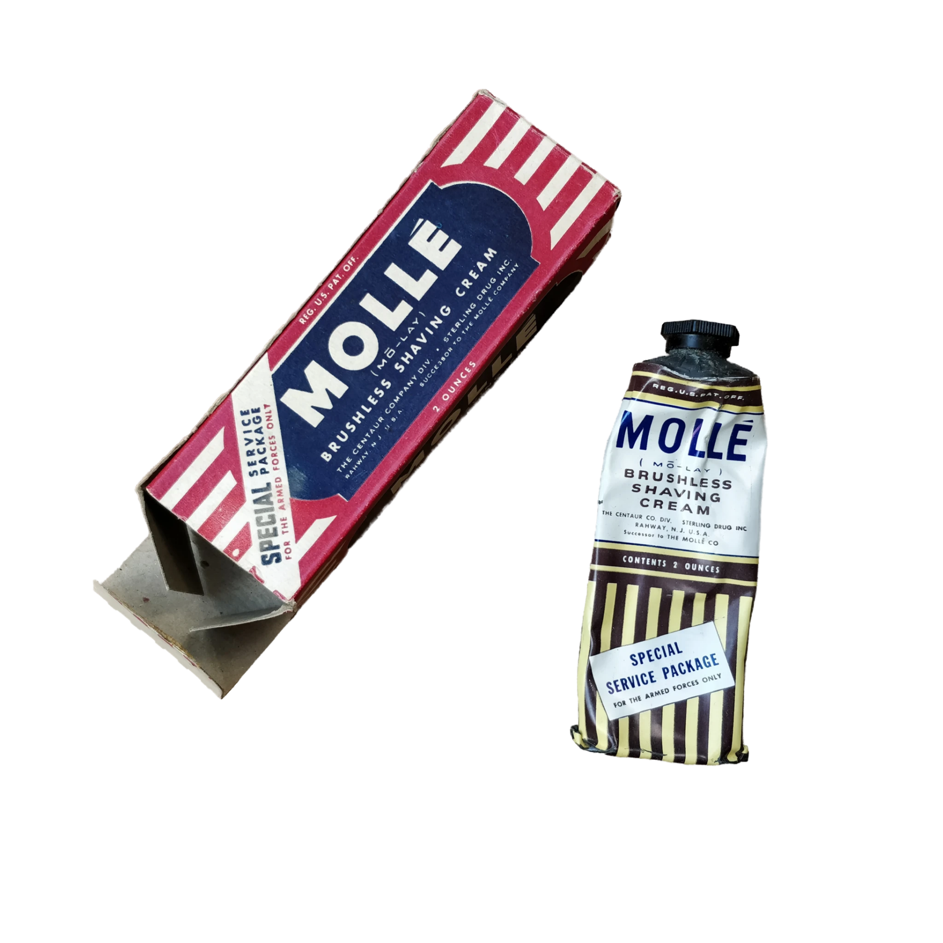 De scheerschuim is nog zo goed als vol! Deze scheerschuim werd uitgereikt aan Amerikaanse soldaten tijdens de Tweede Wereldoorlog zodat zij zich ook in het veld konden scheren. Op het doosje zit een kleine beschadiging maar verder is de set nog in nette staat. Een leuk persoonlijk item van de Amerikaanse soldaat!