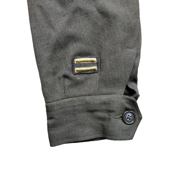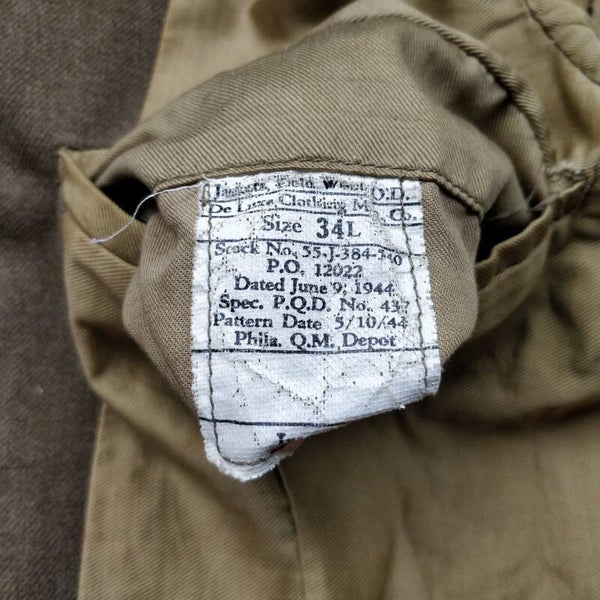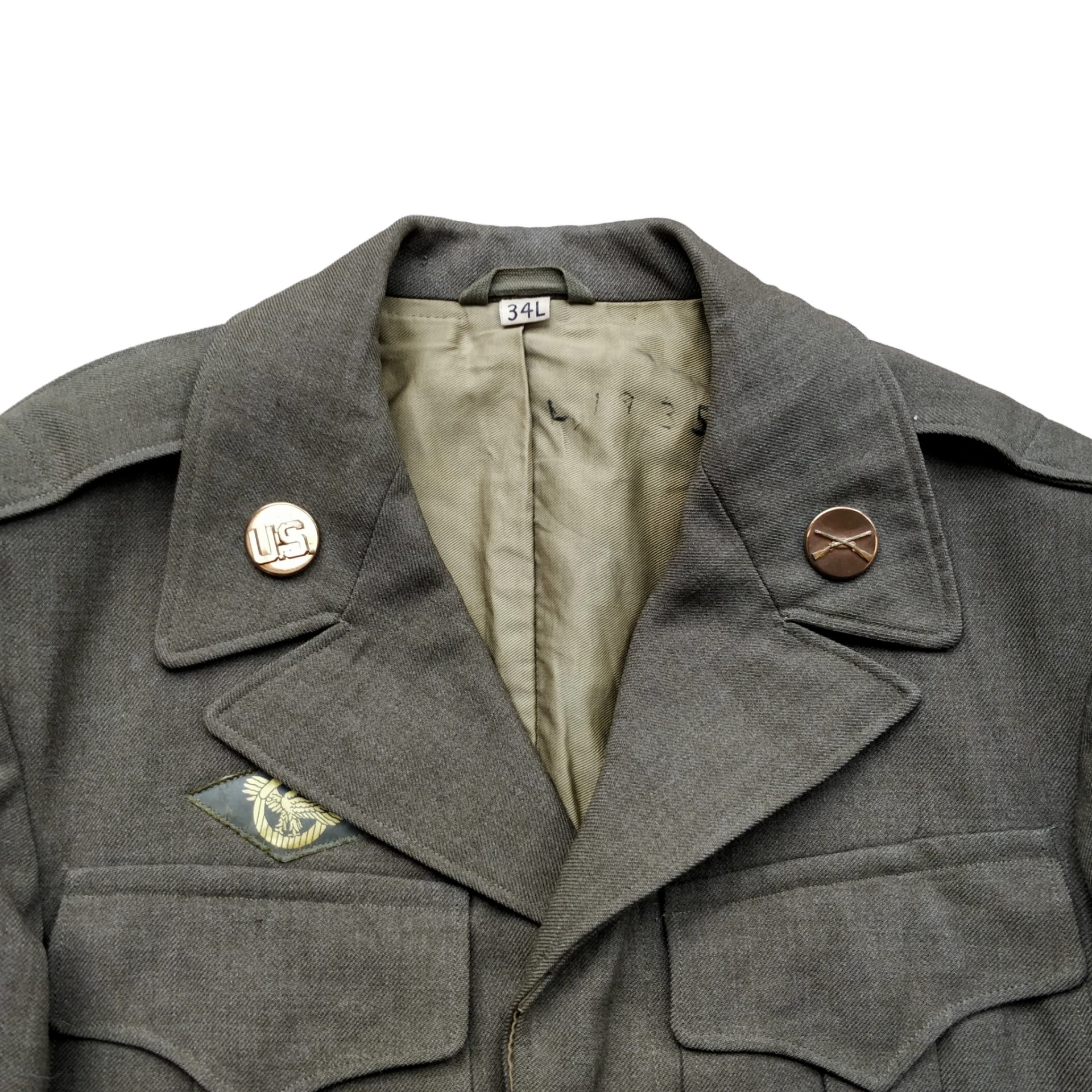 The Ike Jacket is still in very good condition but shows minor signs of wear. It belonged to a soldier serving in the American 13th Airborne Division. It's neatly dated 1944 and is a size 34L! It comes with screwback collar discs for infantry troops, a ruptured duck patch, technician 5th grade stripes, and of course, the 13th Airborne Division patch! This patch is special because it features infantry piping! This was sometimes done for decorative purposes! A beautiful piece for the American collector!