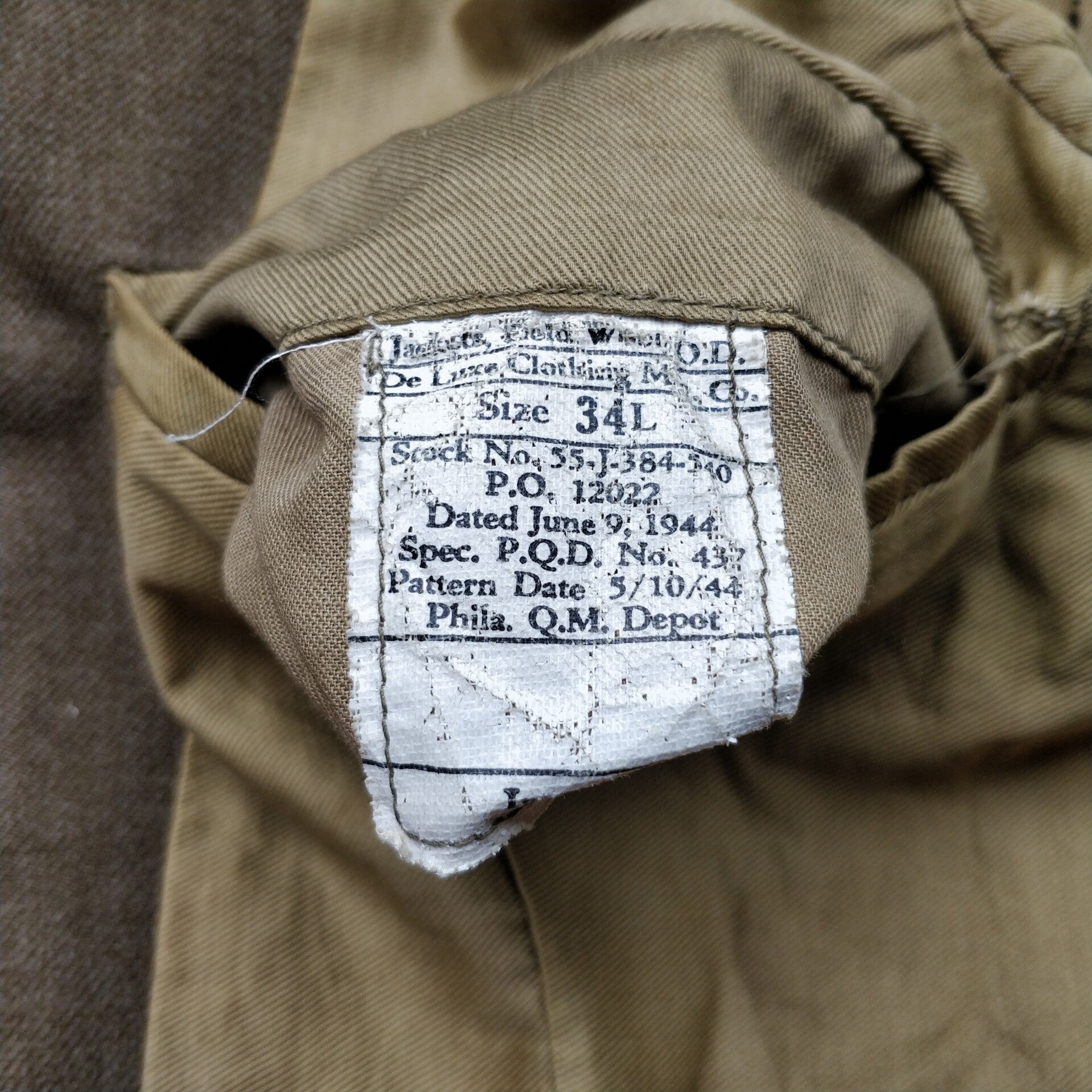 De Ike Jacket is nog erg mooi maar heeft lichte gebruikssporen. De Jas was van een soldaat die onderdeel was van de Amerikaanse 13th Airborne division. De jas is netjes gedateerd 1944 en het betreft een maat 34L! De jas komt met screwback collar discs voor infanterie troepen, Ruptured duck patch, technician 5th grade Stripes en natuurlijk de 13th airborne division patch! Deze patch is bijzonder omdat hij is aangevuld met infantry piping! Dit werd soms gedaan als versiering! Een mooi stuk voor de Amerikaans verzamelaar!