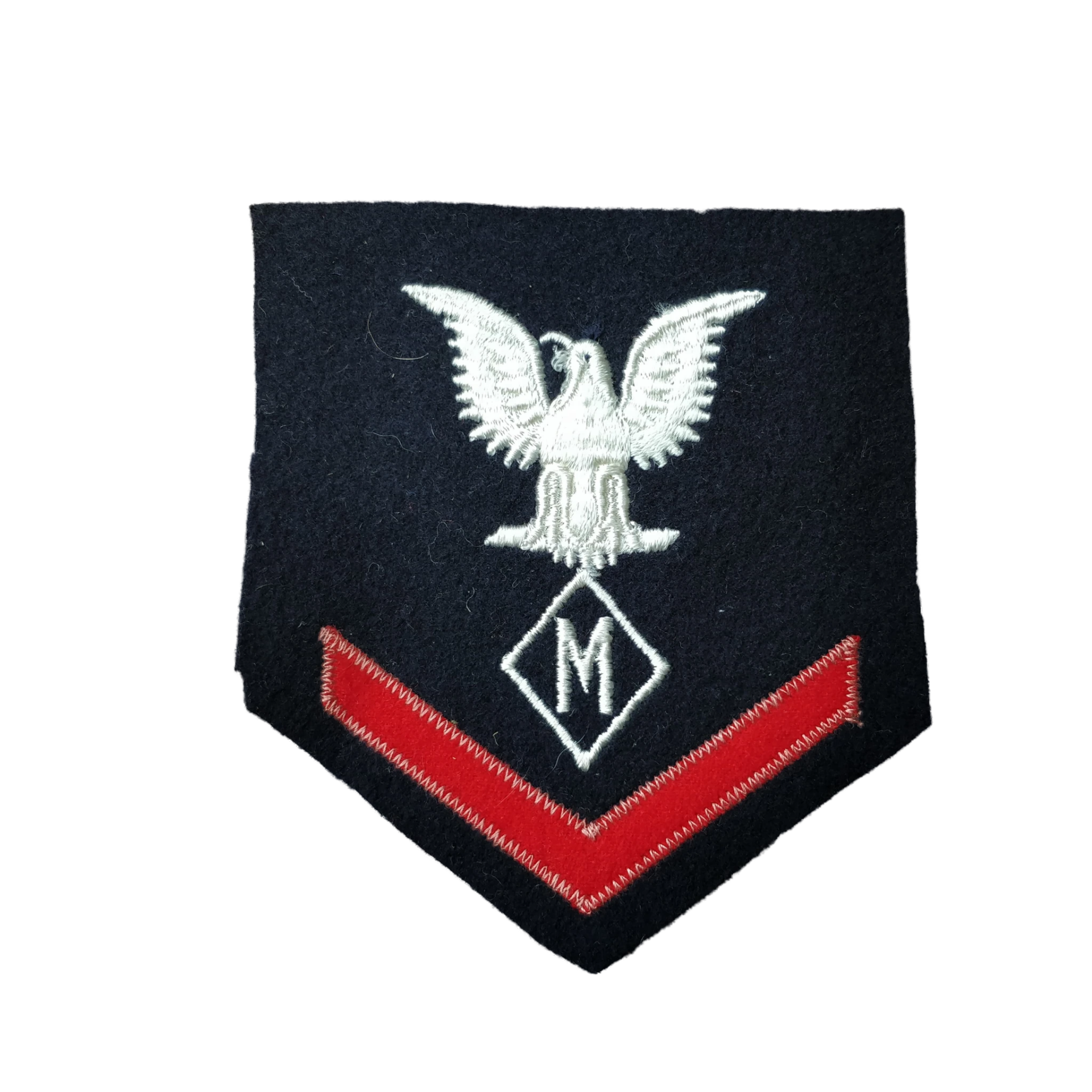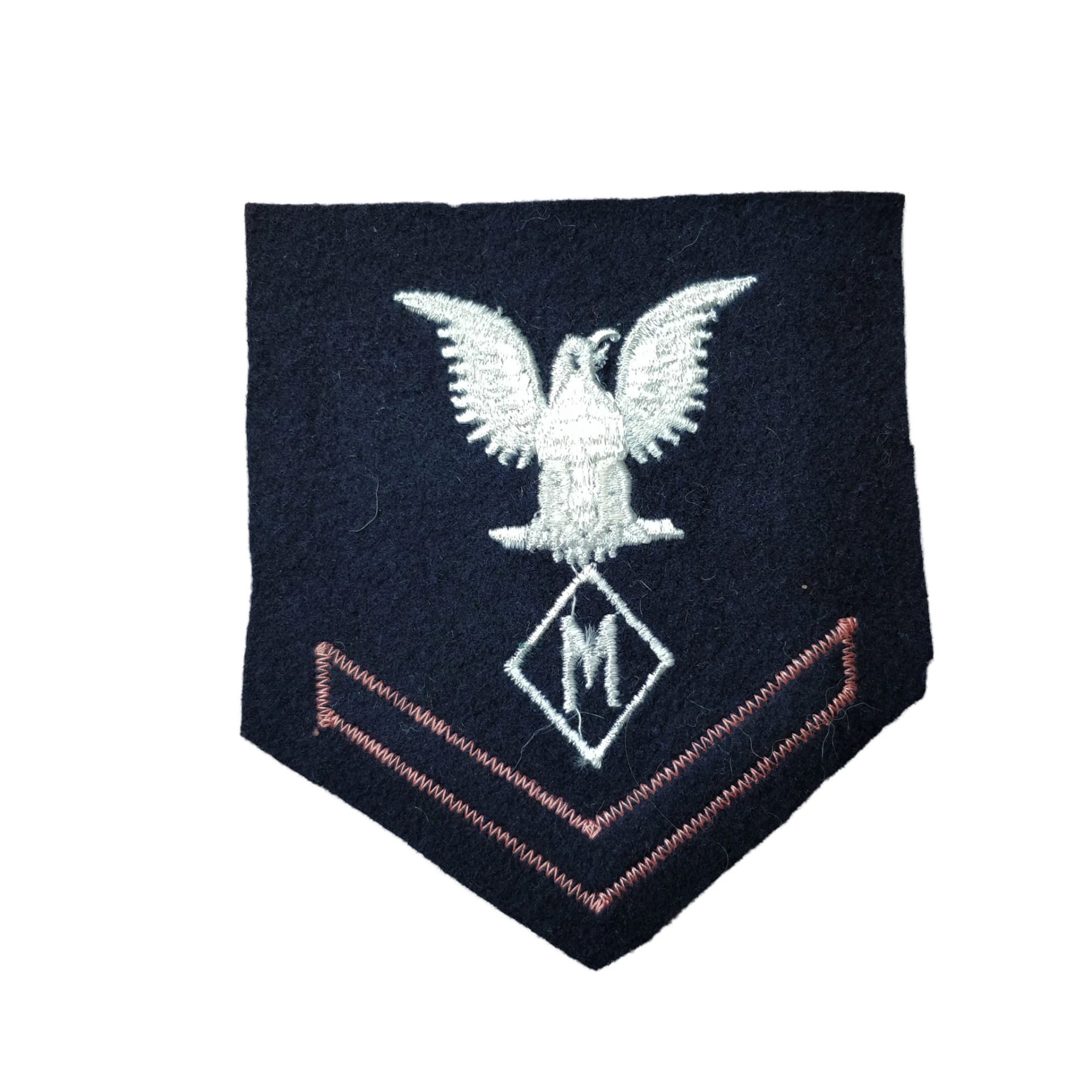 Het embleem werd gedragen door de Amerikaanse marine soldaten tijdens de Tweede Wereldoorlog. Expert M, Petty officer 3rd Class.