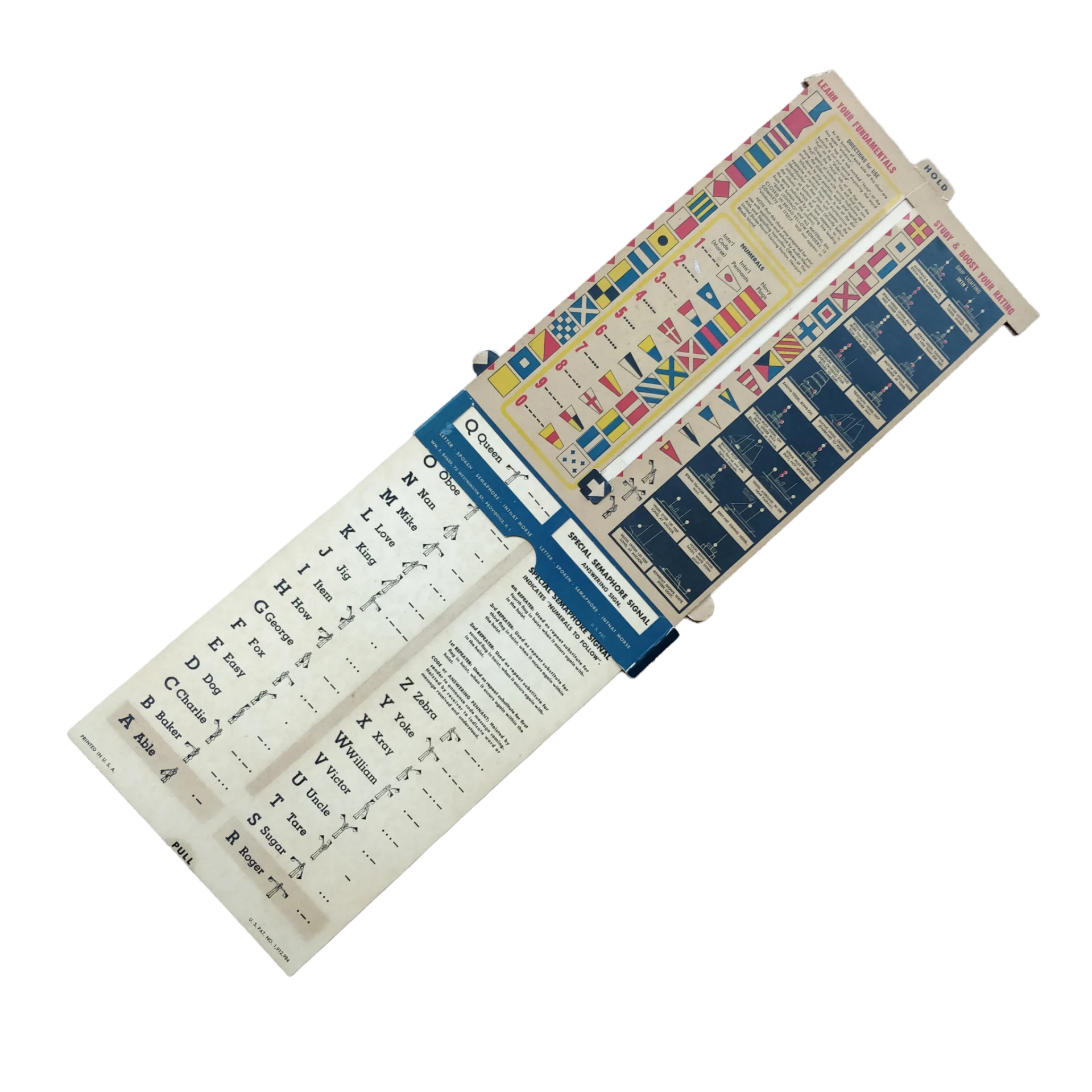 Het document is nog in nette staat en werd tijdens de oorlog gebruikt voor het herkennen van vlaggen en signalen.