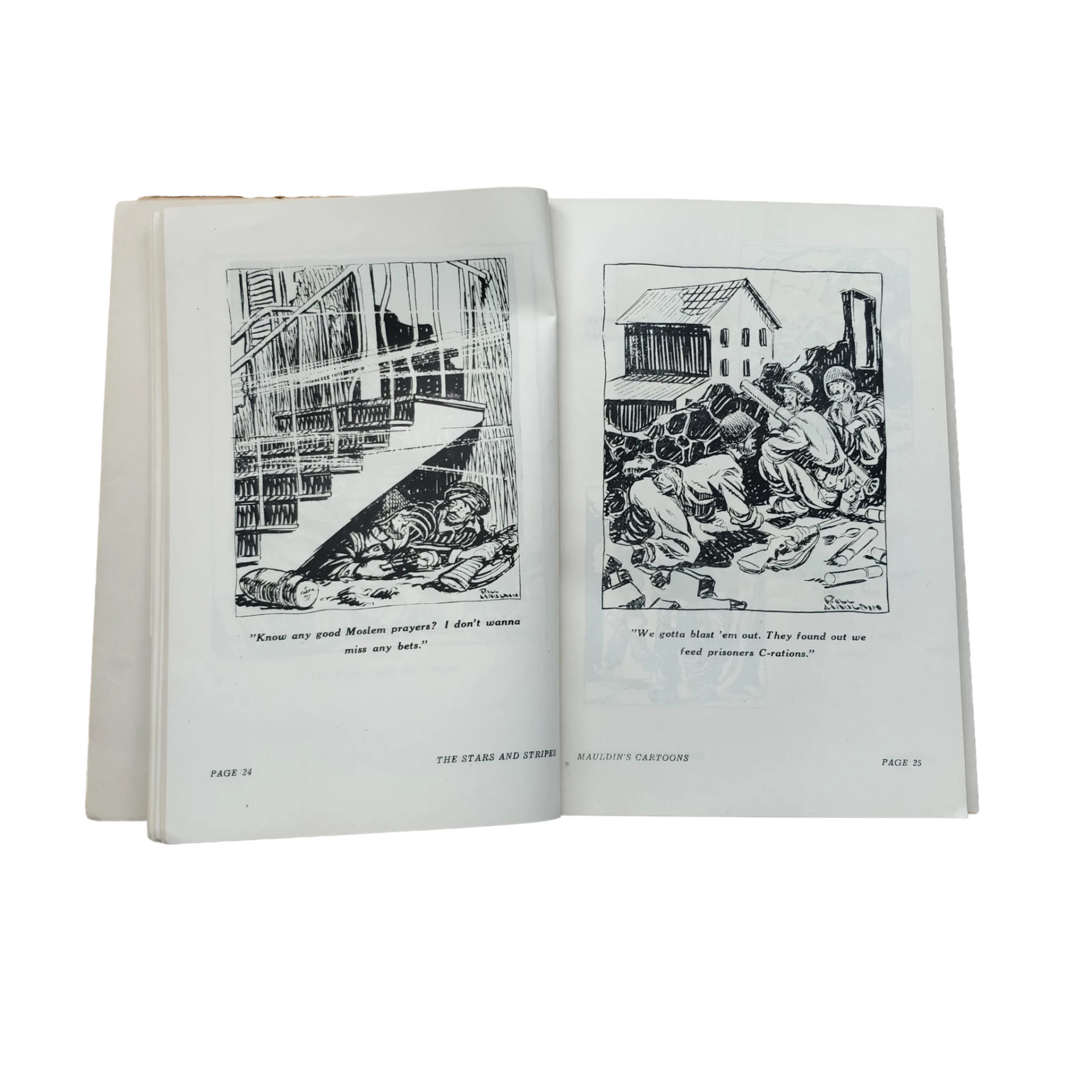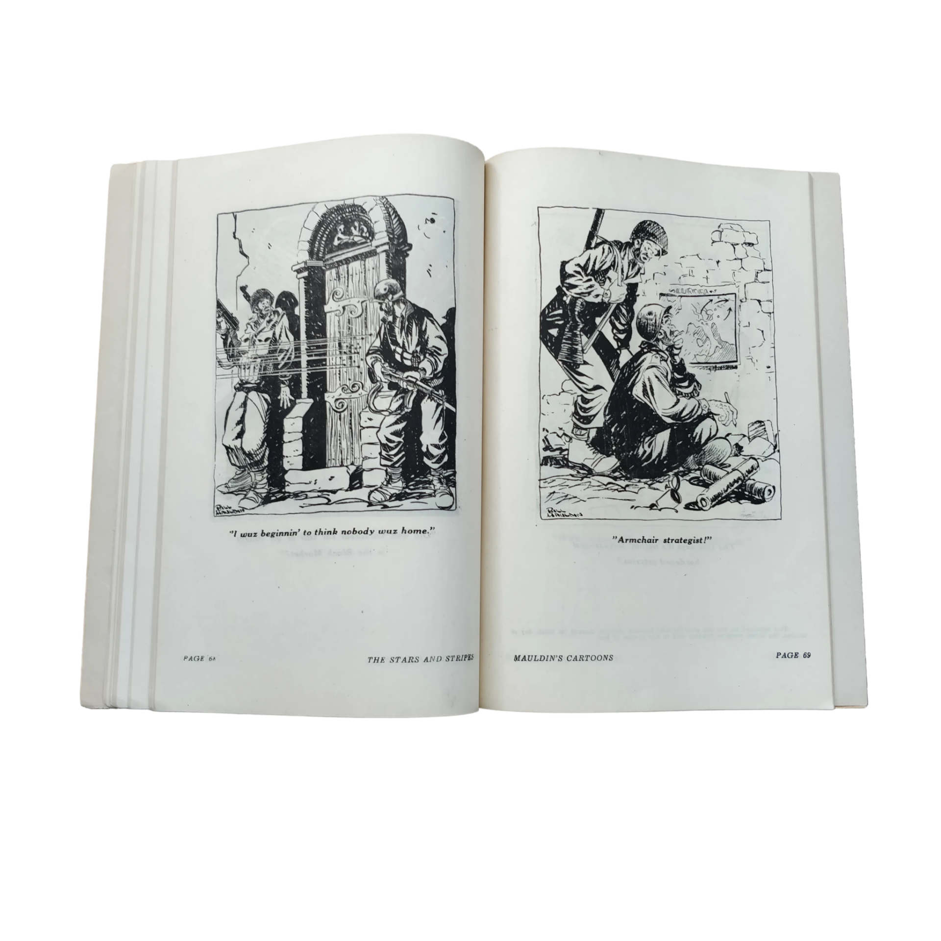 The book is still in reasonably good condition. Bill Mauldin was an American soldier and cartoonist during World War II. His drawings were published during and after the war and have a unique style. A special and interesting piece for the collector!