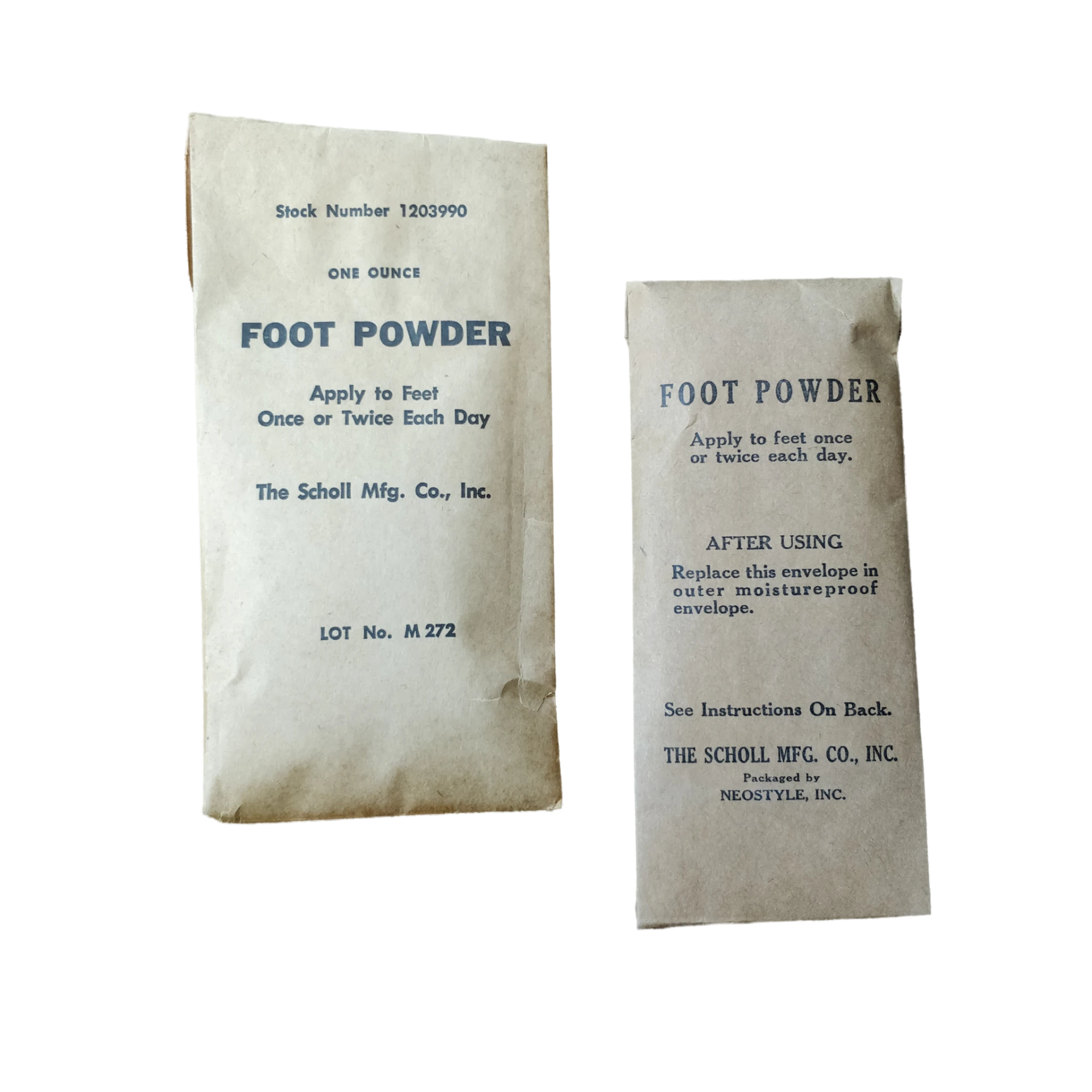 This set consists of two packages: a sachet containing powder and an outer package. The outer package shows some signs of wear. The sachet is still full and sealed! This version is much less common than the tins. A nice addition to any American soldier's personal belongings!