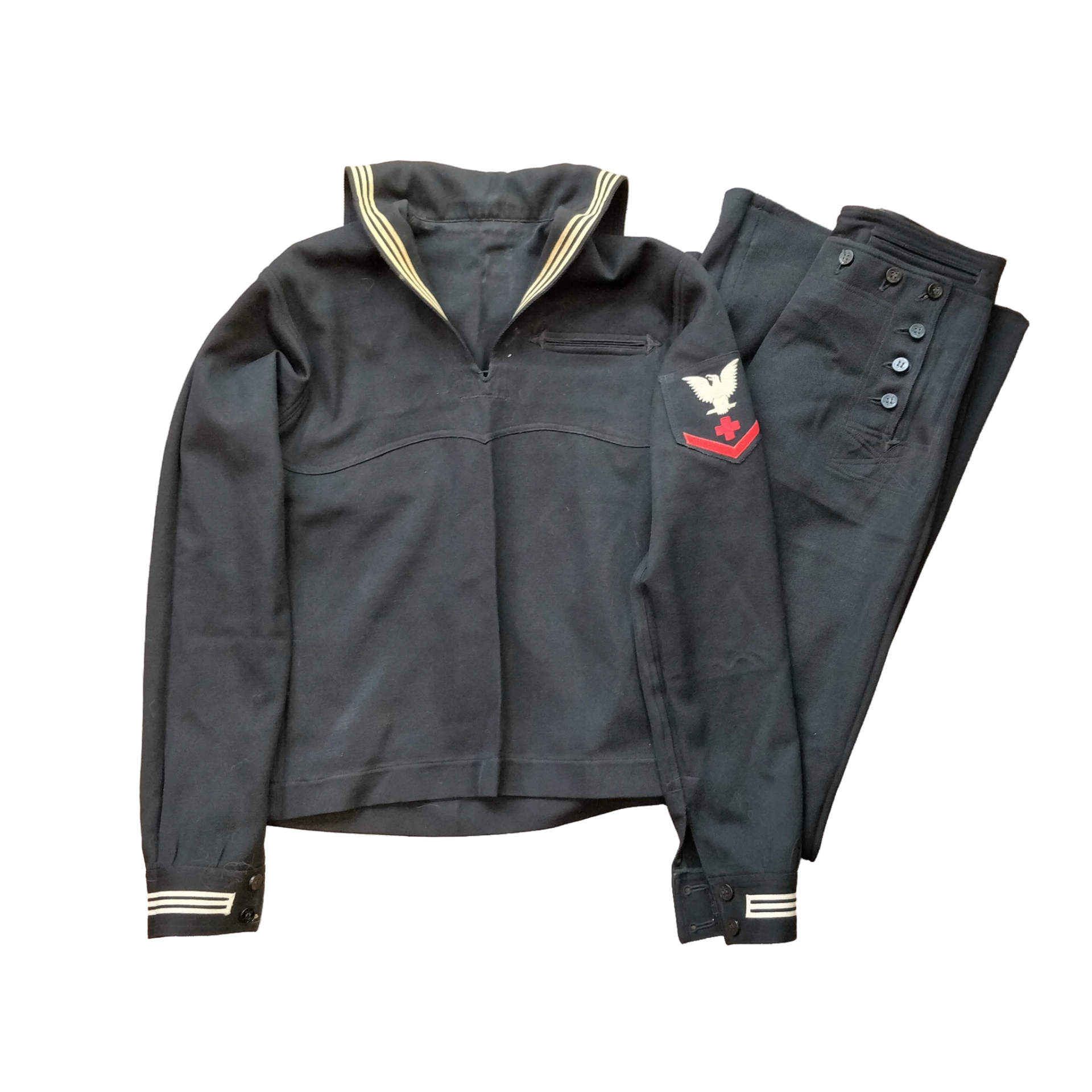 The set is still in good condition and consists of a jacket and trousers! The jacket still has a rank insignia. The set belonged to a pharmacist in the US Navy. A beautiful set for the American militaria collector!
