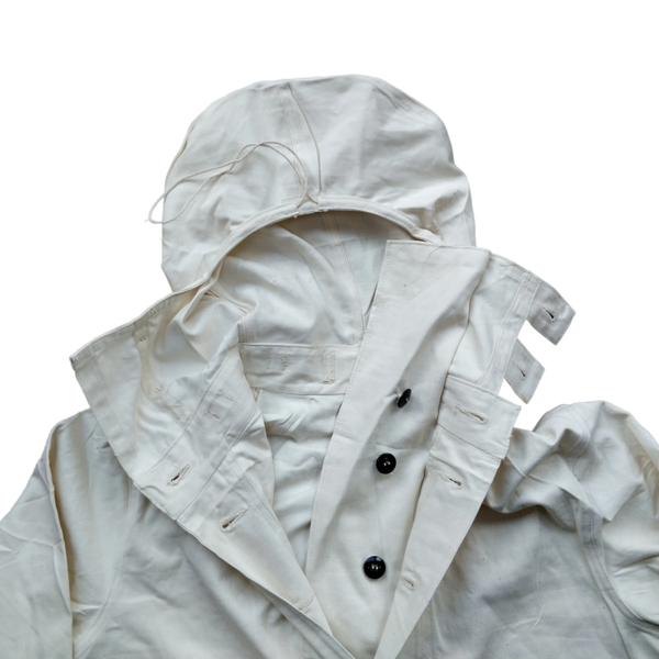 The smock is still in excellent condition and appears unused. Often called Gunner's smocks, they were officially made as anti-gas suits. These smocks were worn, among others, by Navy personnel who went ashore on the landing beaches during D-Day. These smocks are very difficult to find.