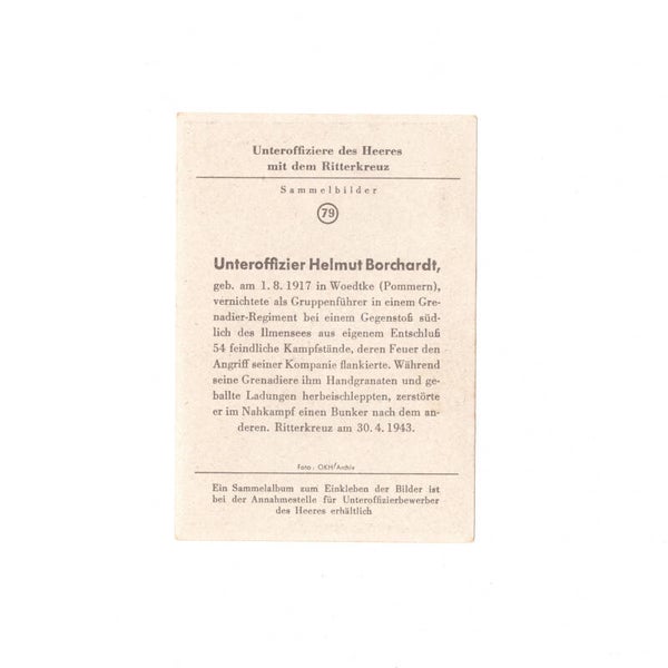 Deze foto's kon men verzamelen, hierop stonden soldaten die het Ridderkruis hadden verdiend. Dit diende als een propaganda middel.