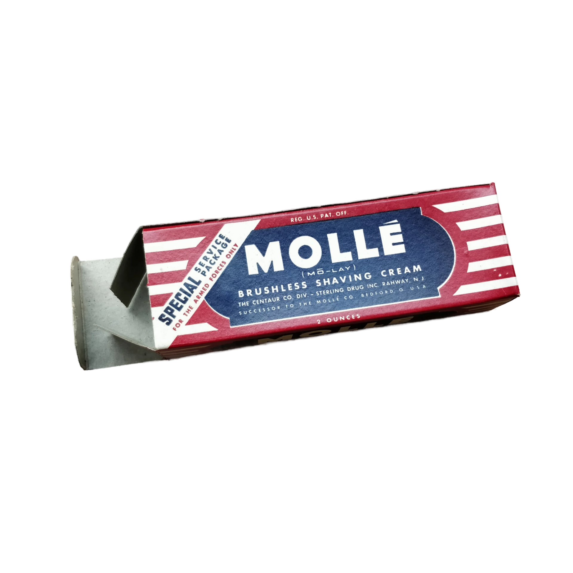 De scheerschuim is nog zo goed als vol! Deze scheerschuim werd uitgereikt aan Amerikaanse soldaten tijdens de Tweede Wereldoorlog zodat zij zich ook in het veld konden scheren. Op het doosje zit een kleine beschadiging maar verder is de set nog in nette staat. Een leuk persoonlijk item van de Amerikaanse soldaat!