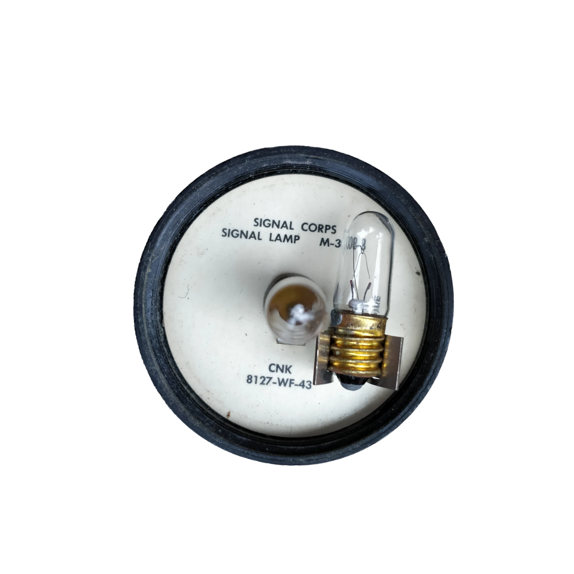 Het licht is nog in nette staat en zelfs het reservelampje zit er nog bij! Deze lichten werden gebruikt door Amerikaans vliegtuig personeel na eventueel neerstorten. Deze werden onder andere gebruikt bij de Gibson Girl radio.