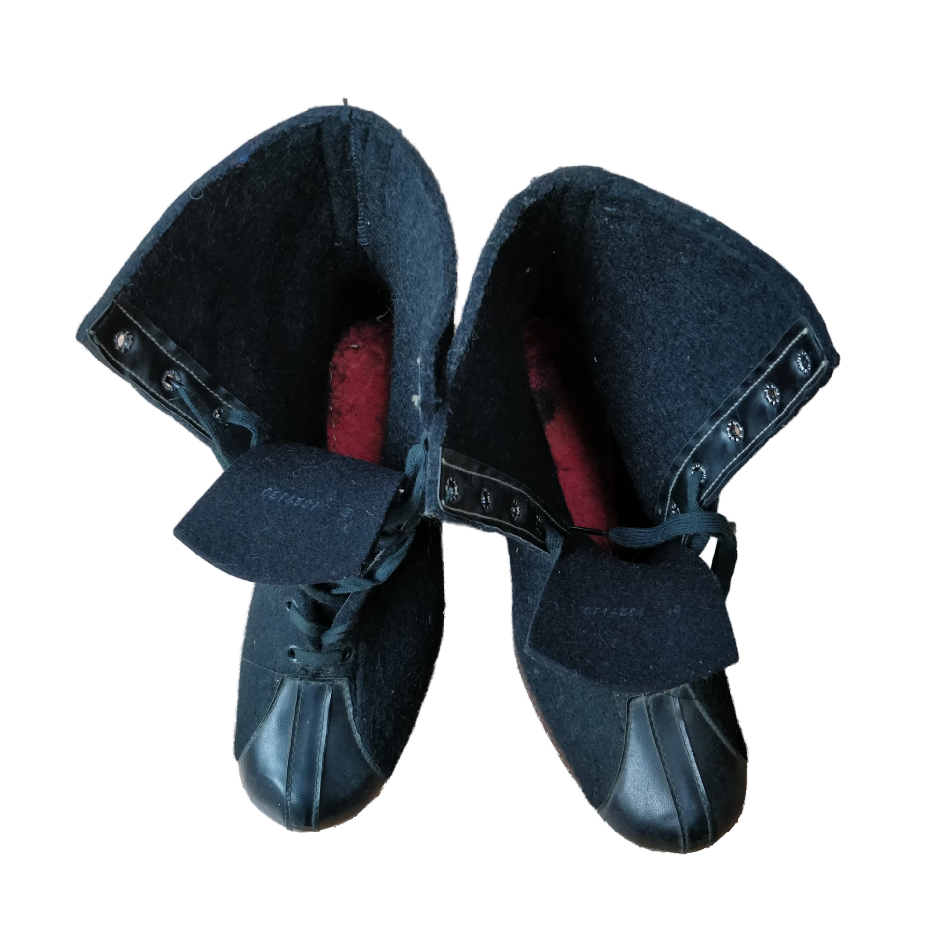 These shoes are in good condition and appear unused. These shoes were worn by members of the US Air Force in cold regions, and other shoes were also worn over these. An interesting set for the Air Force collector!