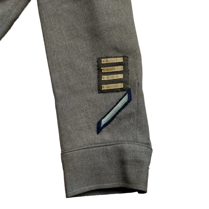 De Ike Jacket is nog erg mooi op een paar kleine plekjes na. De jas was van een soldaat die onderdeel was van de Amerikaanse Air Force. De jas komt met 8th Air Force patch, service stripe en Bullion British made overseas bars! Ook zitten er nog Staff sergeant rank stripes op de jas en staat er een laundry code in de kraag. Het label in de jas is nog goed leesbaar, het betreft een maat 38R. Een mooi stuk voor de Amerikaans verzamelaar!