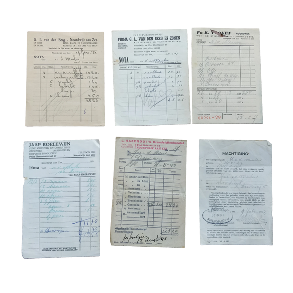 - 9x Bonnetje/Nota (oorlogse en naoorlogse)