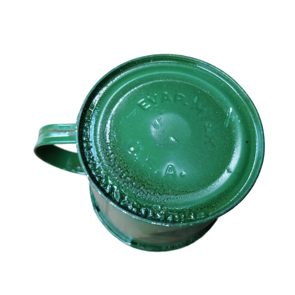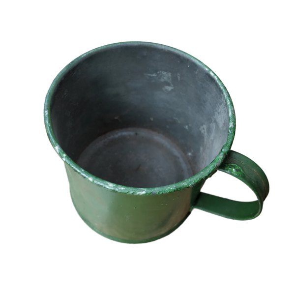 The cup is in neat condition, but has a dent. These cups are made from American ration cans. An interesting and unique piece that shows the scarcity in wartime!