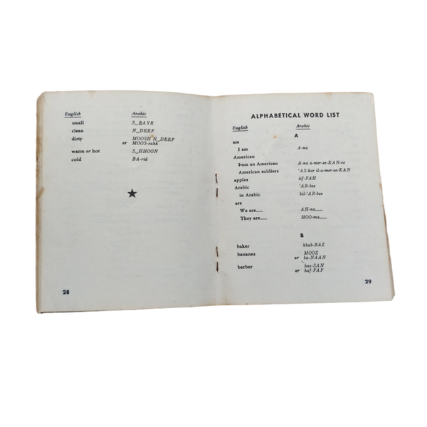 Het boekje is nog in nette staat en is 1943 gedateerd. Deze boekjes werden door de Amerikanen gebruikt om de taal te leren om zich enigsinds te kunnen redden in Afrika. Een leuk en interessant item voor de militaria verzamelaar!