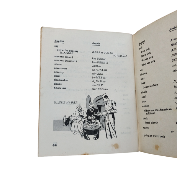 The booklet is still in good condition and is dated 1943. These booklets were used by the Americans to learn the language in order to survive in Africa. A nice and interesting item for the militaria collector!