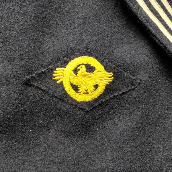 Het jasje is nog in nette conditie, hier en daar een motplekje en de rits heeft wat roest. Er is nog een label te zien met maker en de jas is zelfs nog op naam! Een mooie toevoeging voor je Amerikaanse Navy collectie! De jas heeft een wollen, blauwe navy ruptured duck. Het insigne op de mouw staat voor een Engineer in het Construction Battalion (CB) in de Navy.