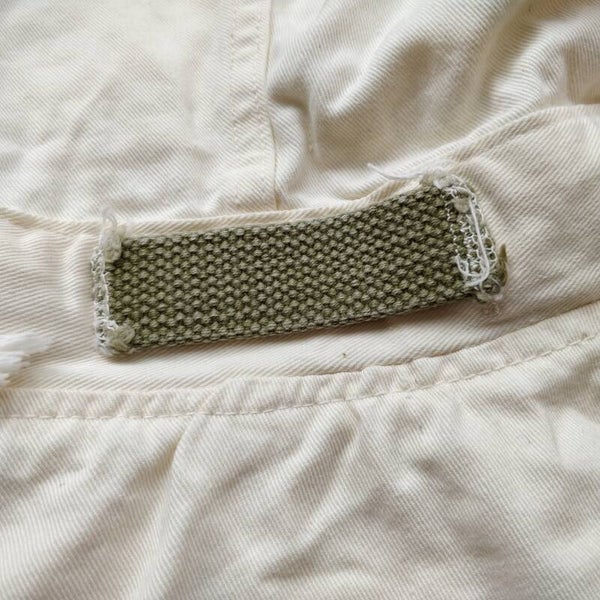 The makers stamp with contract number is still readable. This smock was made by the Michael A. Zielinski Company. Zielinski had a contract from 1941/1942, and this is the model worn during D-Day. The other models made by Perry Sports are from after D-Day! The smocks were worn white on board ships and were sometimes impregnated with green on land.