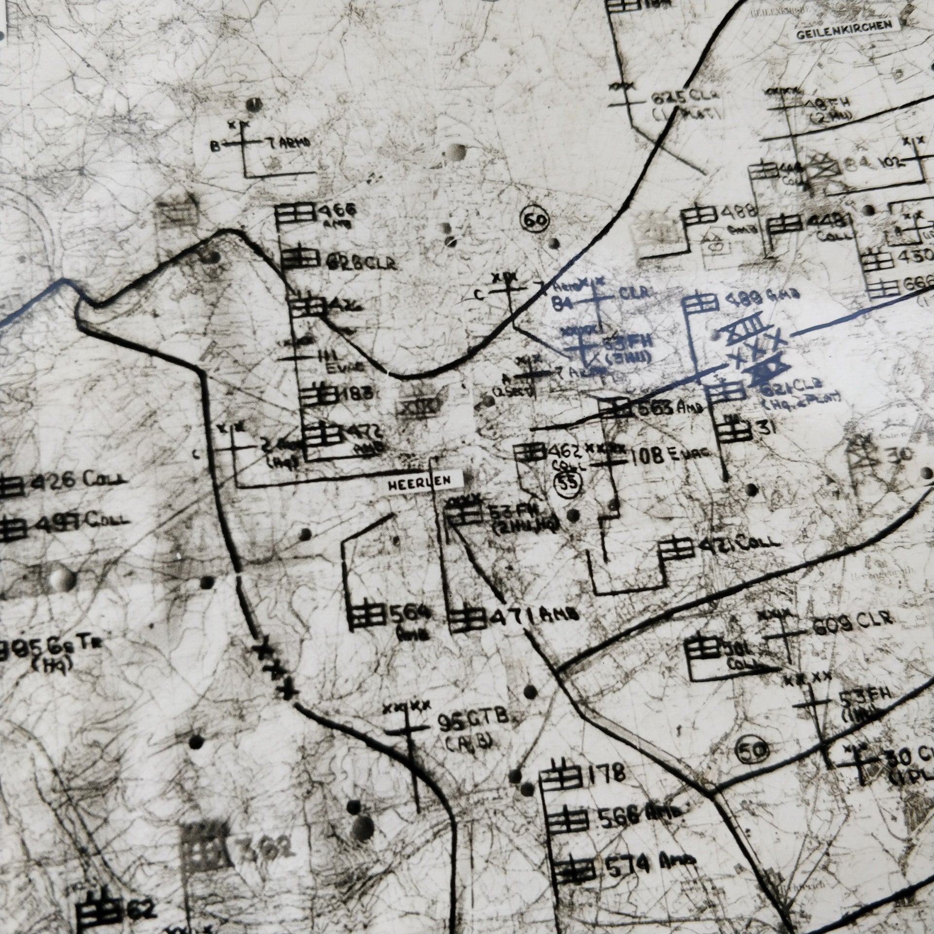 De foto is nog in nette staat en op de foto zijn nog duidelijk de meegedrukte aantekeningen te lezen over de situatie van de Amerikaanse troepen vlak voor het Ardennen Offensief! Op de achterzijde staat nog een 'Secret' stempel. Een zeer bijzonder stuk voor je collectie!