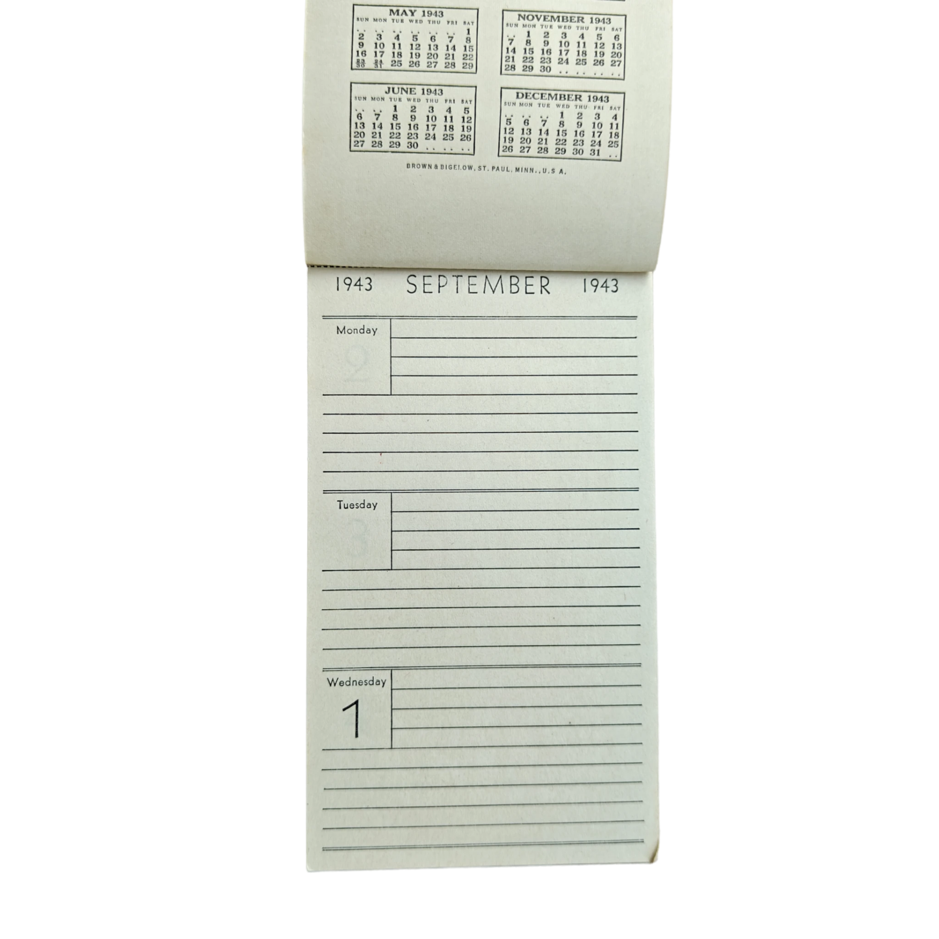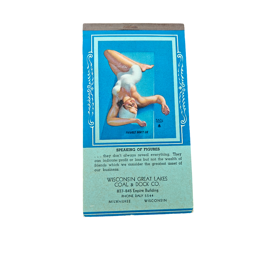 This booklet is still in good condition. It covers one month and features a pin-up girl on the front. A great display item!