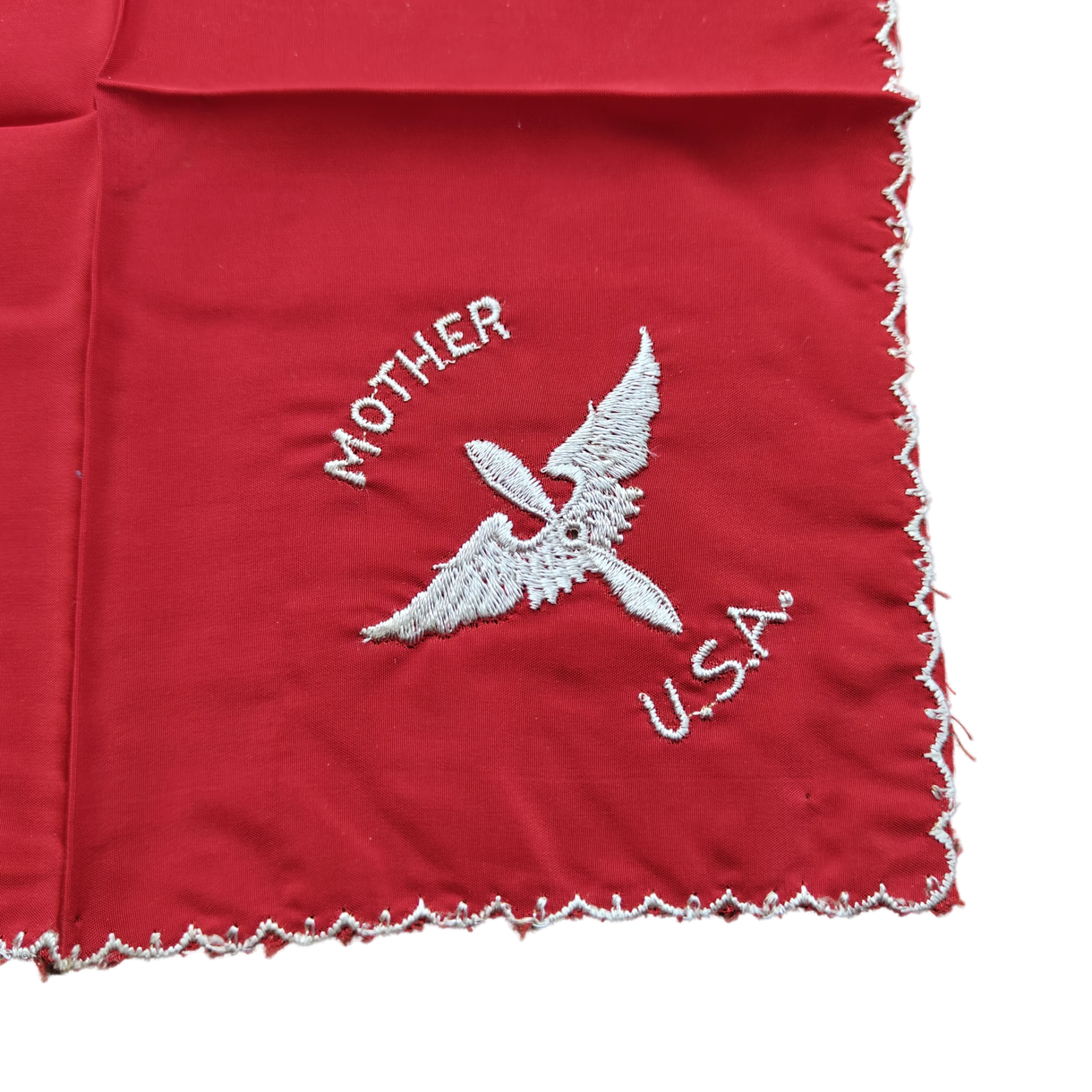 This handkerchief is still in good condition. These handkerchiefs were used by wives, mothers, or other family members of Americans serving in the military. A beautiful display piece!