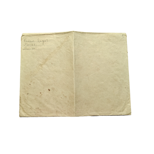 The document is still in good condition and comes with an envelope. Both the envelope and the document are registered to Hazel Benson. An interesting item for further research!