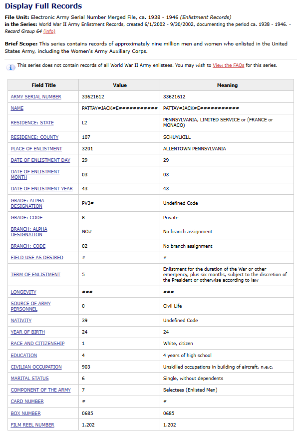 WWII US Wool EM/NCO Visor Cap Named