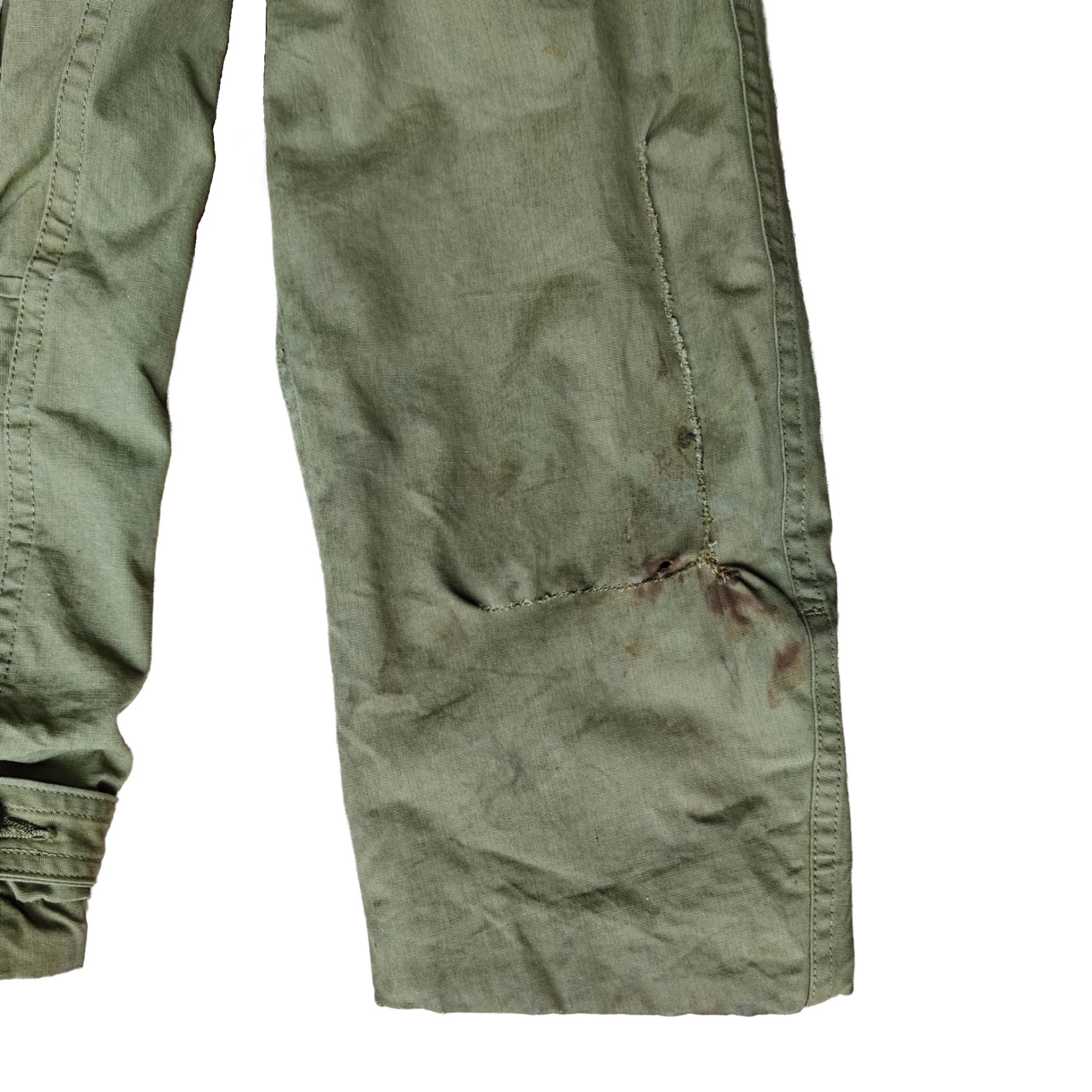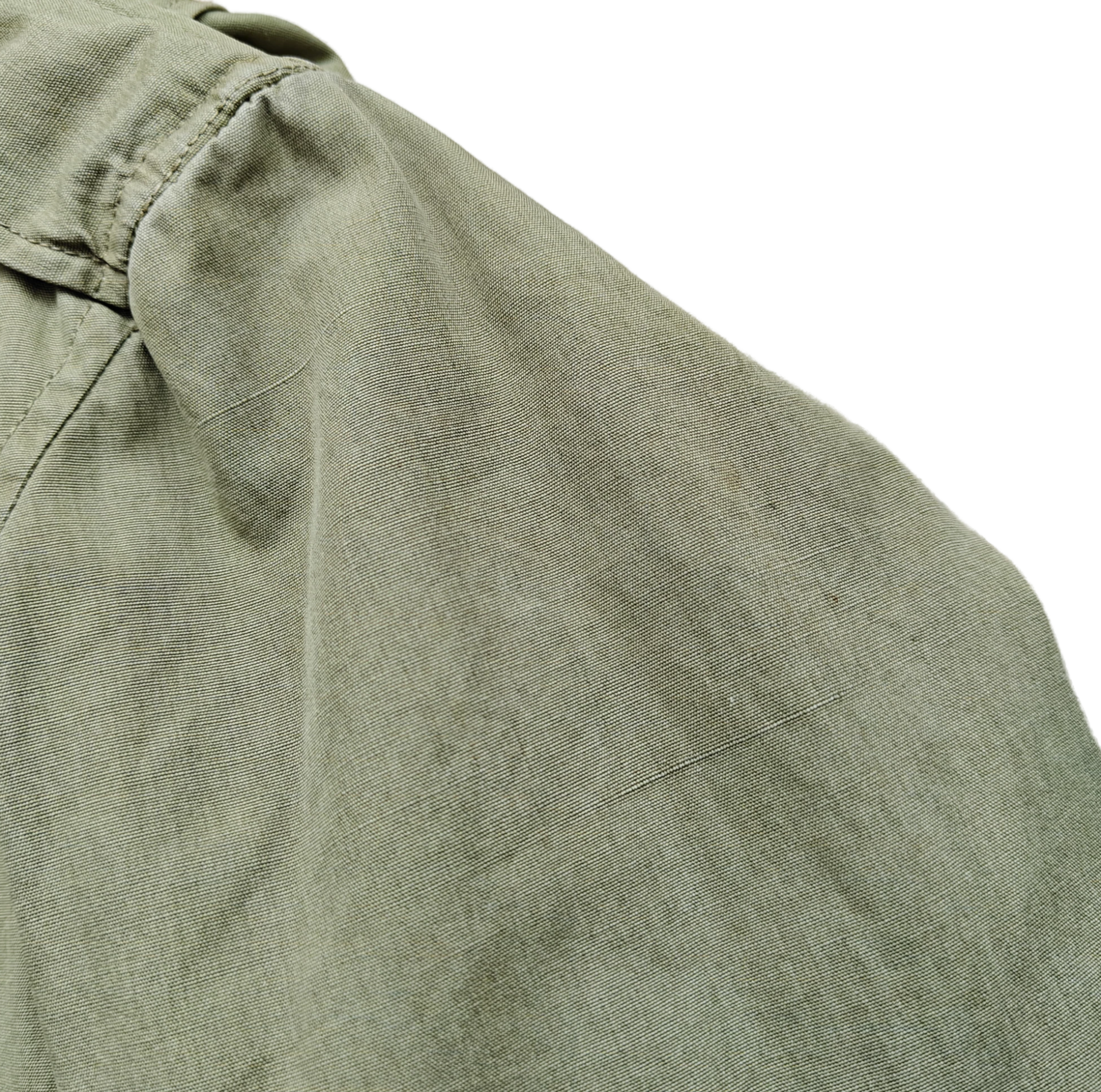 The jacket is in used condition. There are some signs of wear and repairs here and there. Unfortunately there is no longer a label, but it is a larger size, probably 38L. The zipper has been damaged but still functions. A beautiful jacket for an American mannequin!
