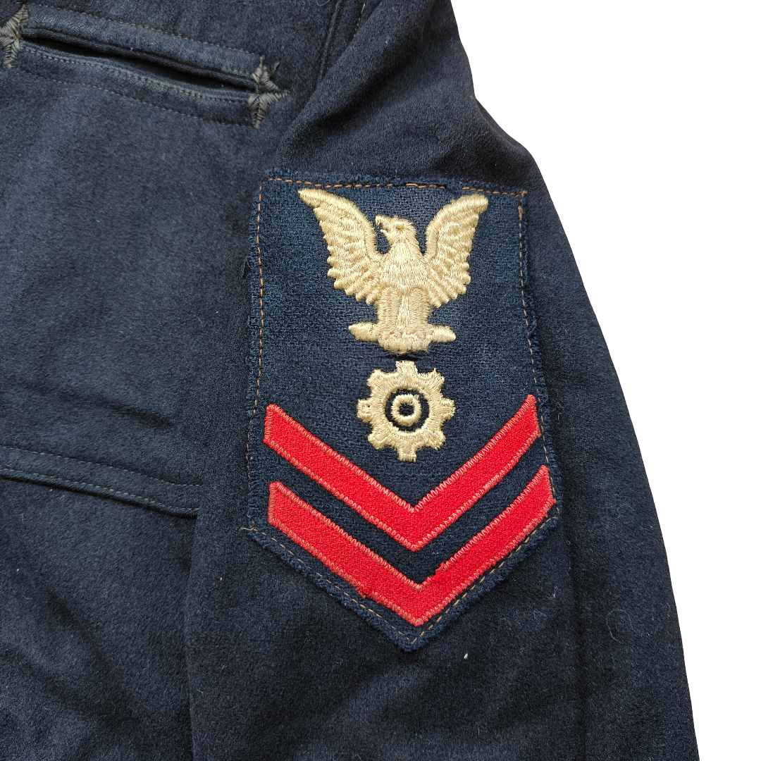 The jacket is still in good condition. It features an Engineman rank insignia and a patch. A nice addition to your US Navy collection!