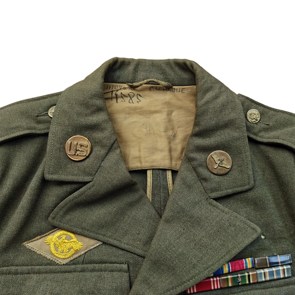 Ook heeft de jas screwback collar discs voor Air Force troepen en een ribbon bar met 6! medailles. Een interessante jas voor de Amerikaanse verzamelaar!