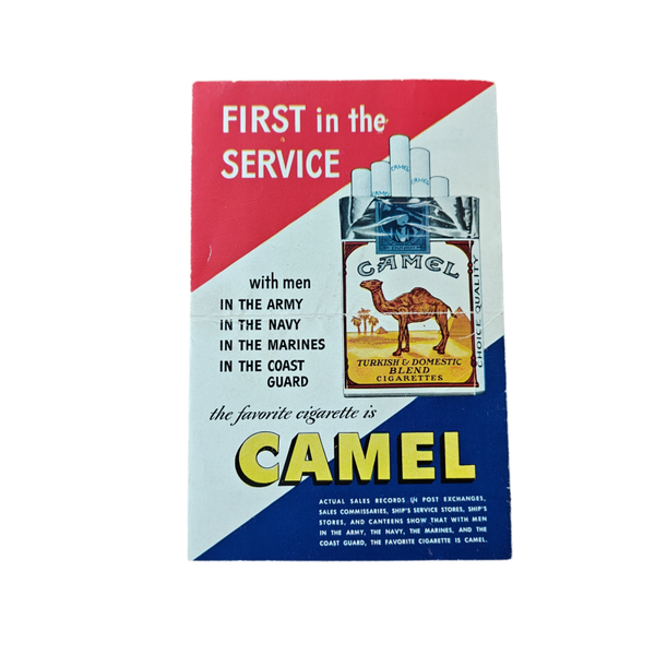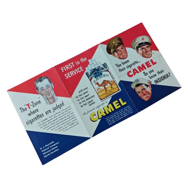The brochure shows some signs of wear but is otherwise complete and in reasonably good condition. The text is still legible, and the brochure contains information about US Army insignia during World War II. And, of course, an advertisement for Camel cigarettes! A unique and rarely offered item!