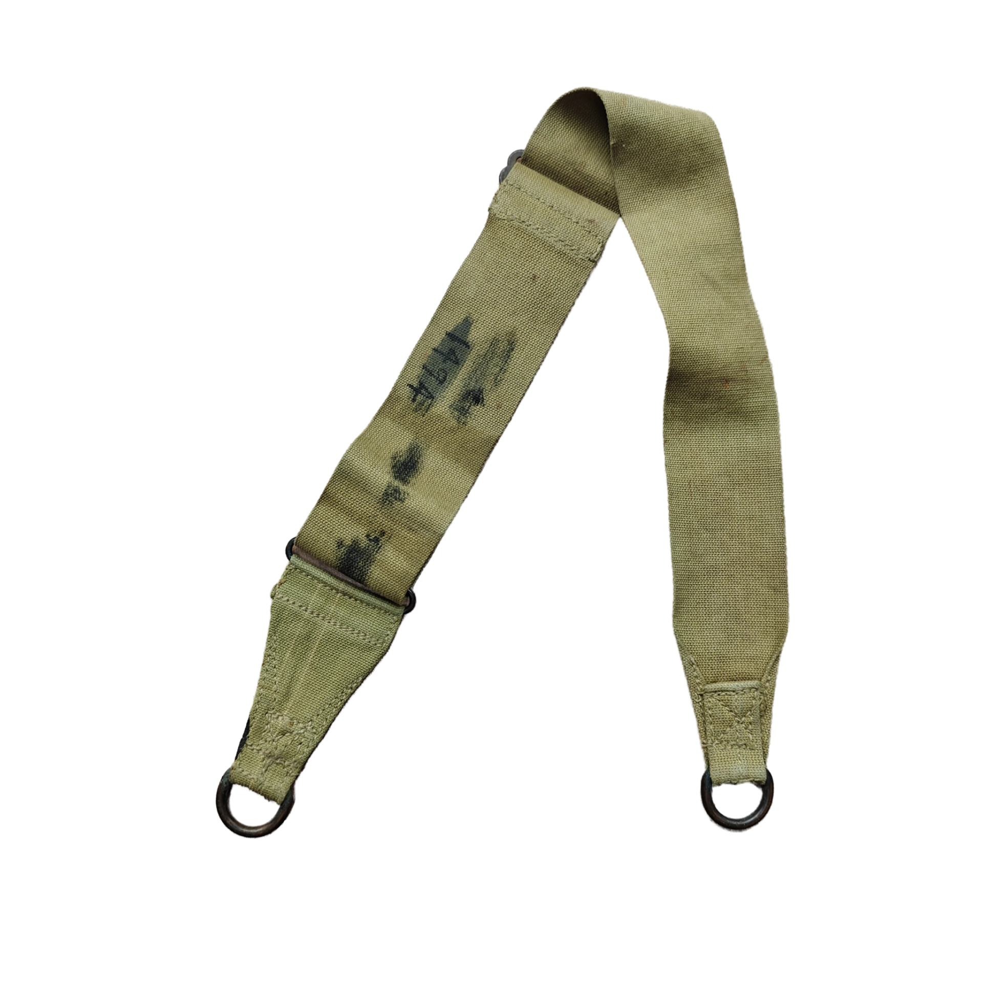 De strap is in goede staat maar wel gebruikt. Deze straps werden onder andere gebruikt voor Musette bags. Een mooi stuk om je set weer compleet te maken!