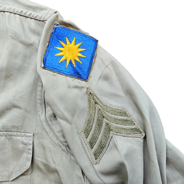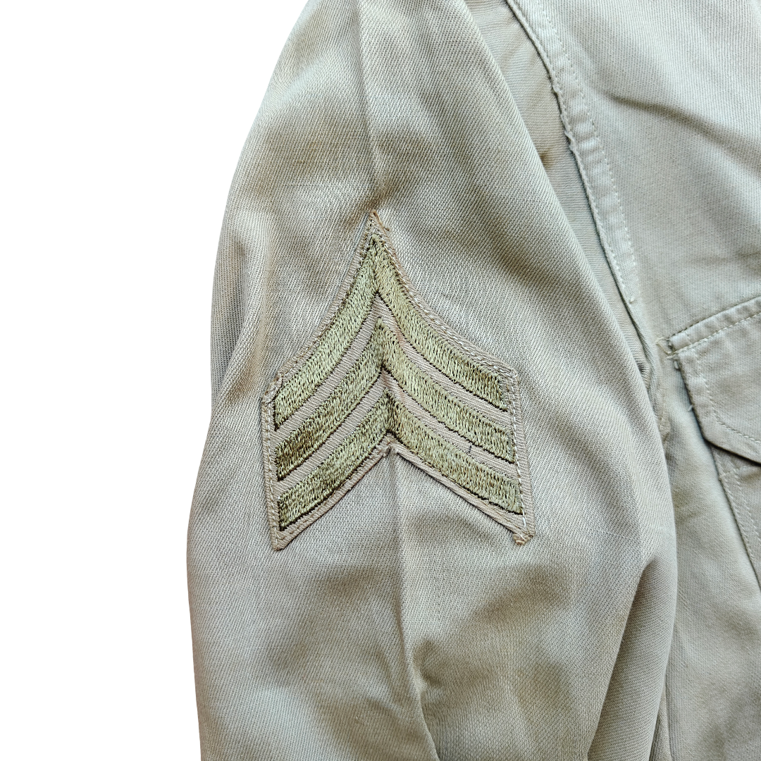 The blouse has signs of wear, but overall in good condition. The Shirt has an 40th infantry Division patch and sergeant rank stripes. A nice addition to your US collection!