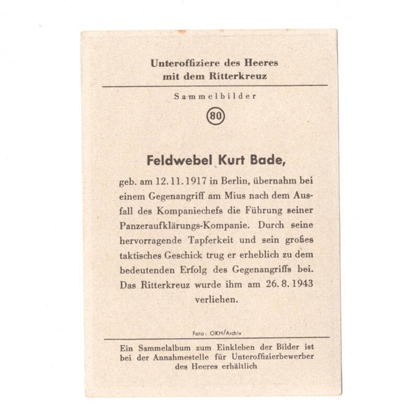 Deze foto's kon men verzamelen, hierop stonden soldaten die het Ridderkruis hadden verdiend. Dit diende als een propaganda middel.
