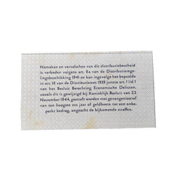 De bon is nog in goede conditie. Deze bonnen werden gebruikt voor het verkrijgen van staal en ijzerwaren. Deze bon is voor 5kg staal of ijzer.