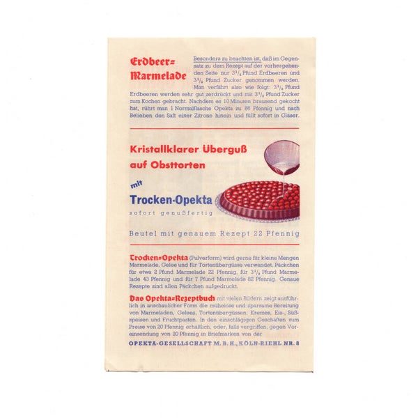 The brochure is from the well-known company Opekta. Anne Frank's father (Otto Frank) owned the Opekta location in Amsterdam. The brochure is pre-war and written in German.