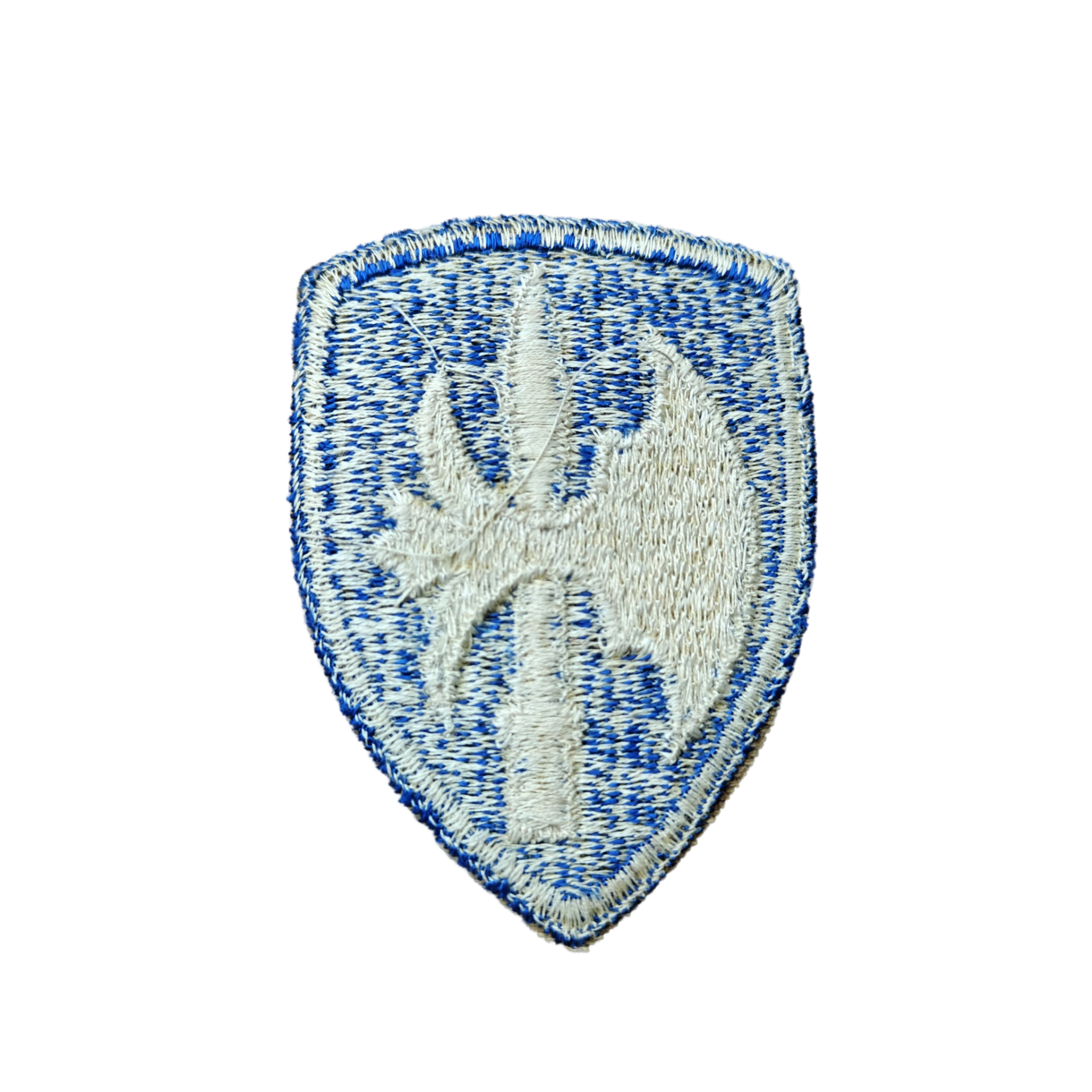 This emblem was worn by American soldiers who were part of the 65th infantry division. The division fought in France, the Siegfried line and around the river Rhine, among others.