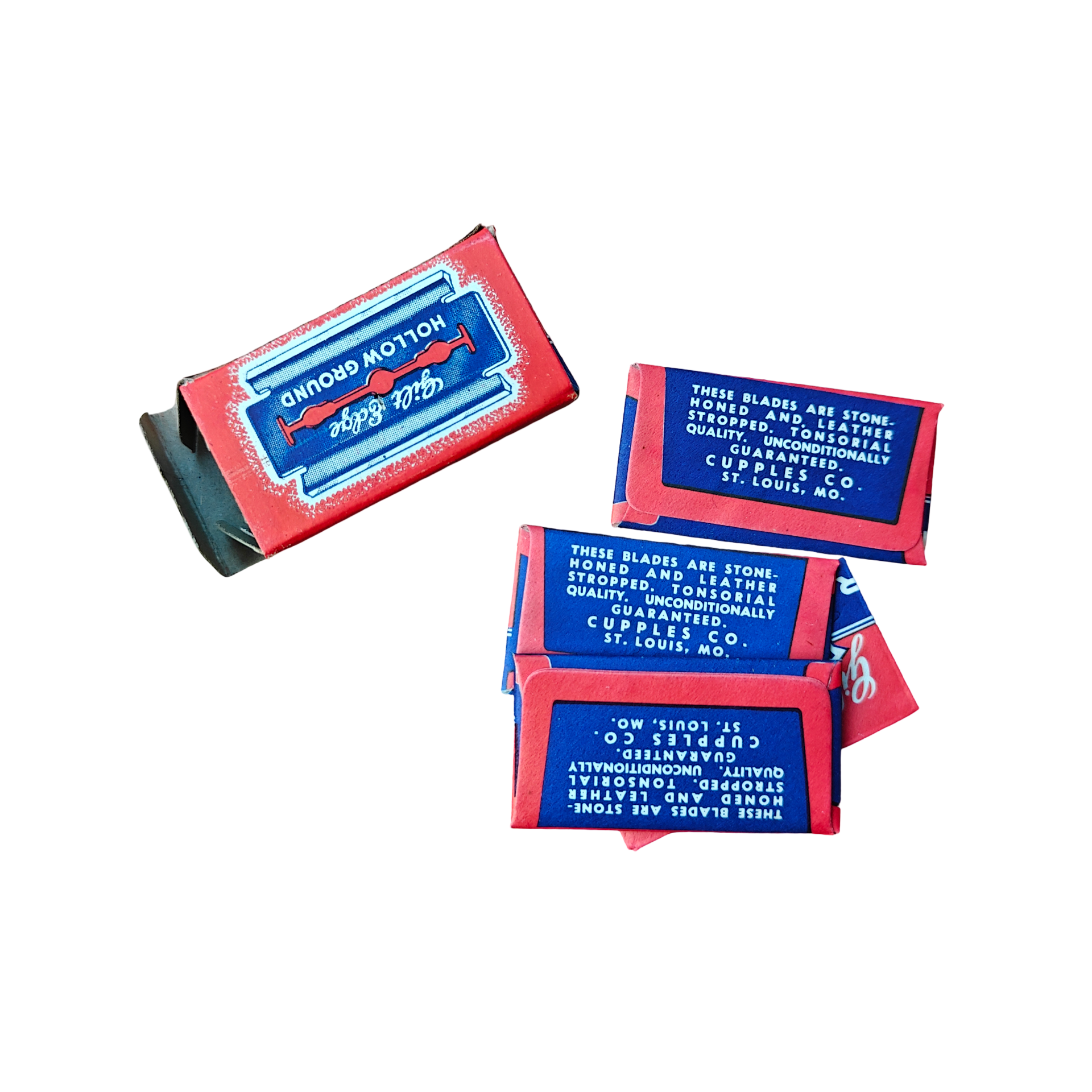 Het pakje scheermesjes is in goede conditie en zelfs nog vol!