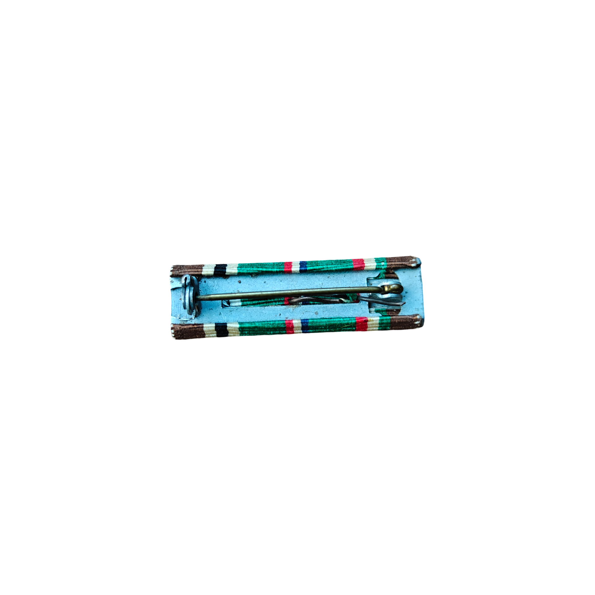 De ribbon bar is nog in nette staat en past mooi op een Amerikaans uniform. Deze is voor de European/African campaign medal met 2 sterren, een voor elke betrokken campagne!