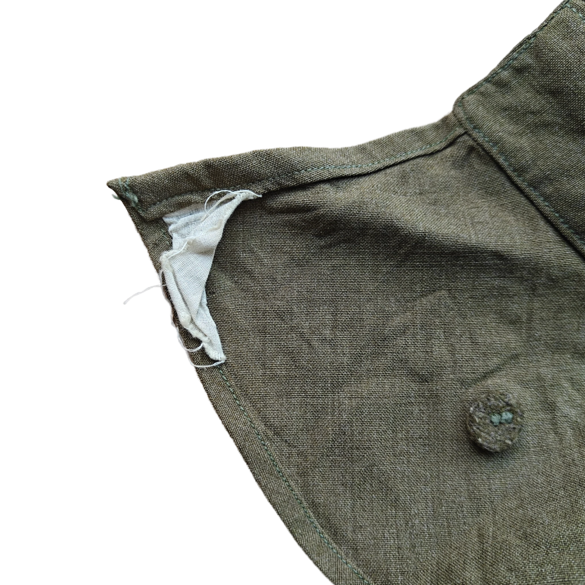 The hood is in good condition and still has both labels. The maker's label is somewhat faded. This is a size M. These hoods were also worn a lot in the winter during the Ardennes Offensive. A nice piece for a mannequin!