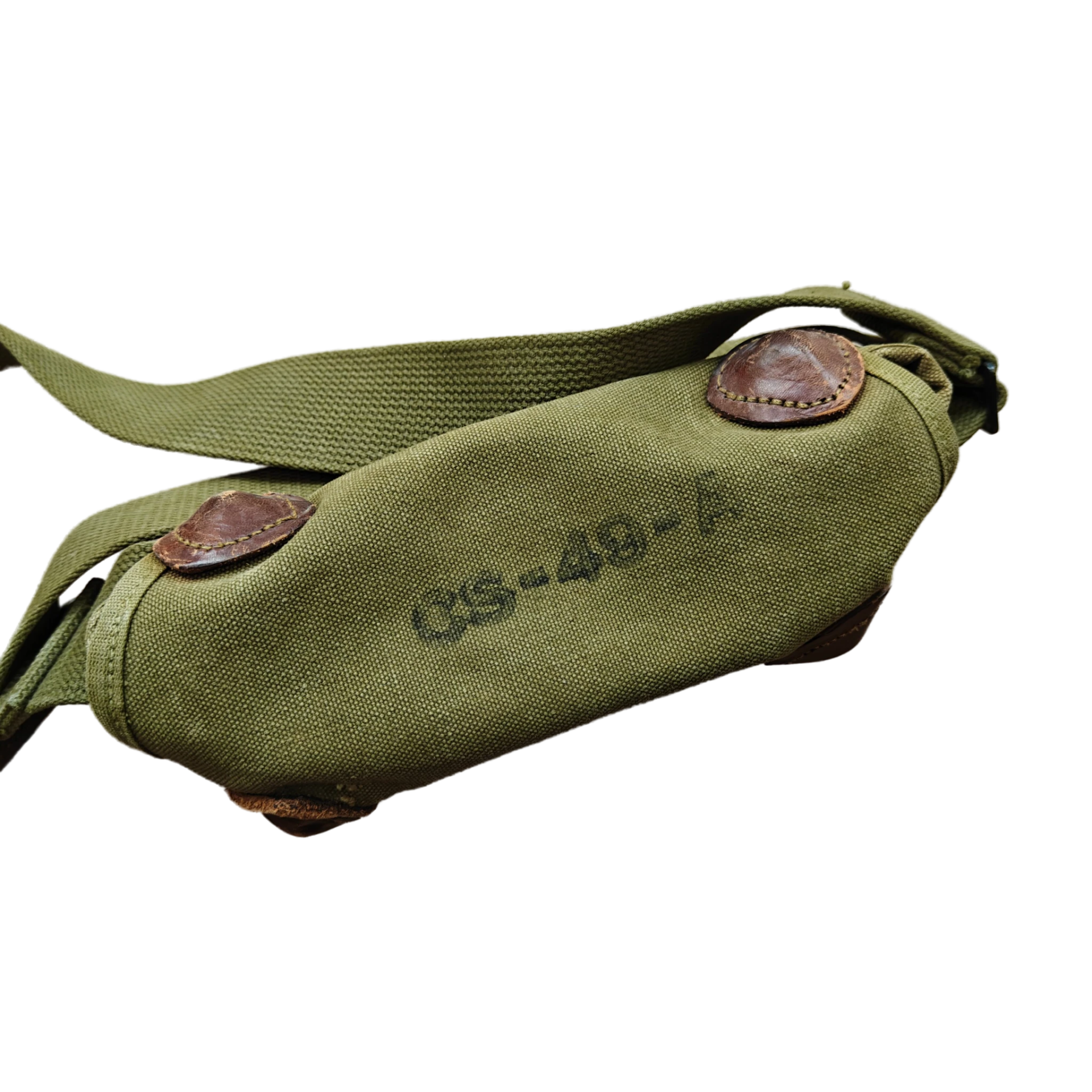 De tas is nog in nette staat maar heeft zo zijn gebruikssporen. Compleet met riem. Mooi voor display of voertuigaankleding.