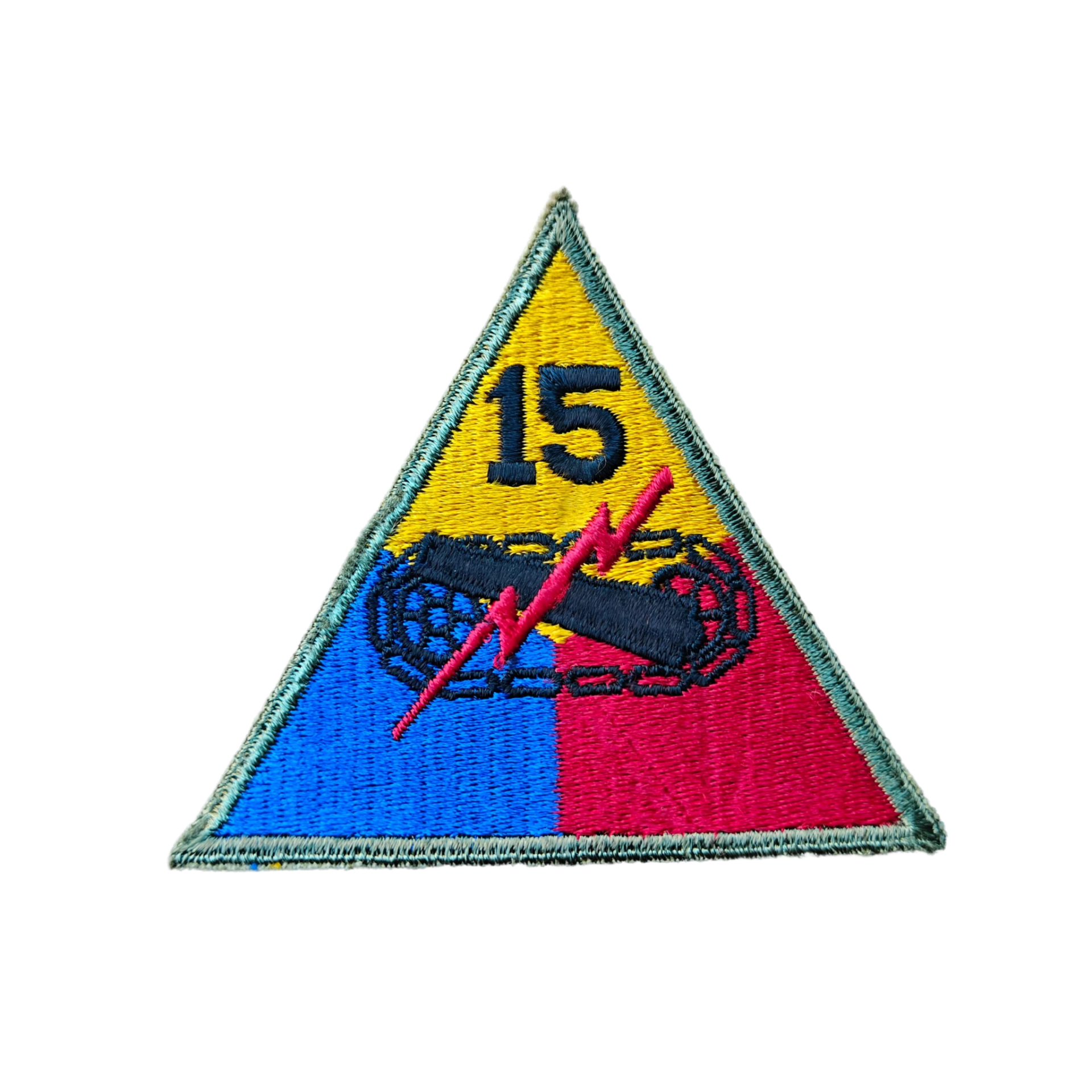 This emblem was worn by American soldiers who were part of the 15th Armored Infantry Battalion.
